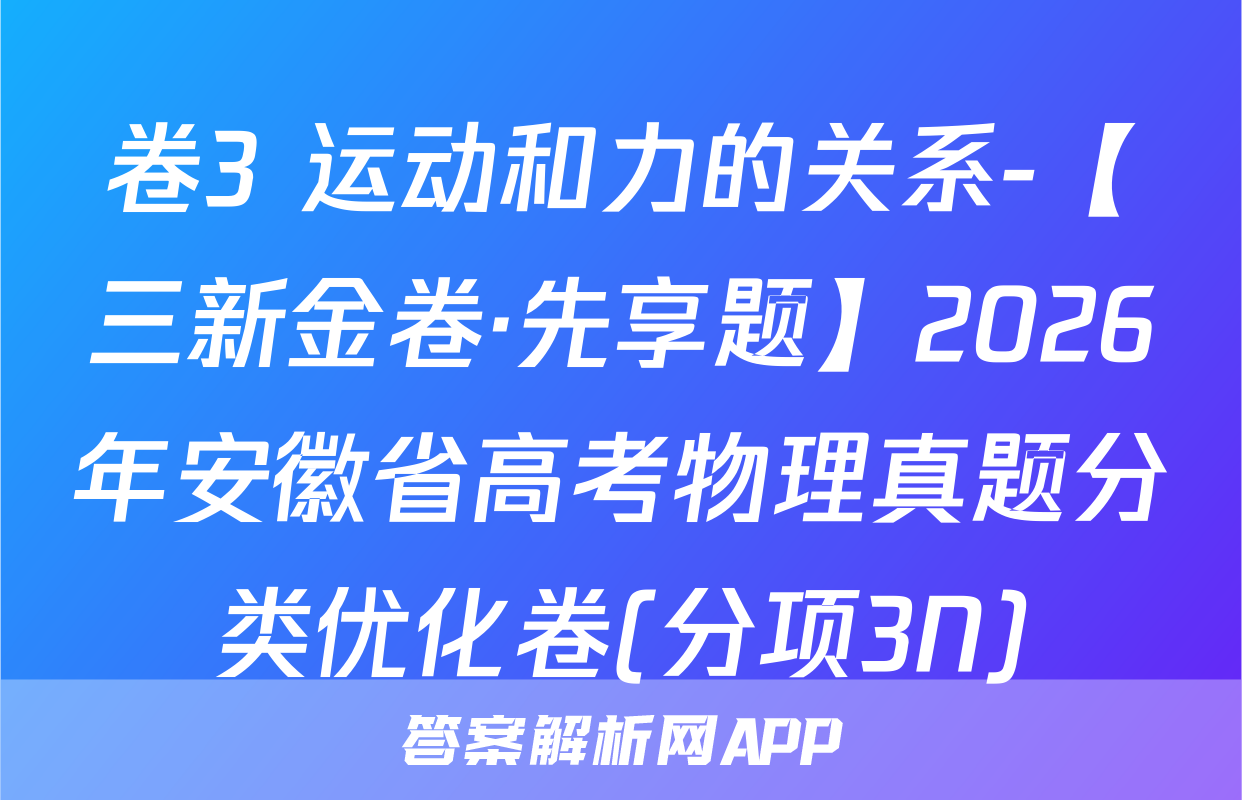 卷3 运动和力的关系-【三新金卷·先享题】2026年安徽省高考物理真题分类优化卷(分项3N)