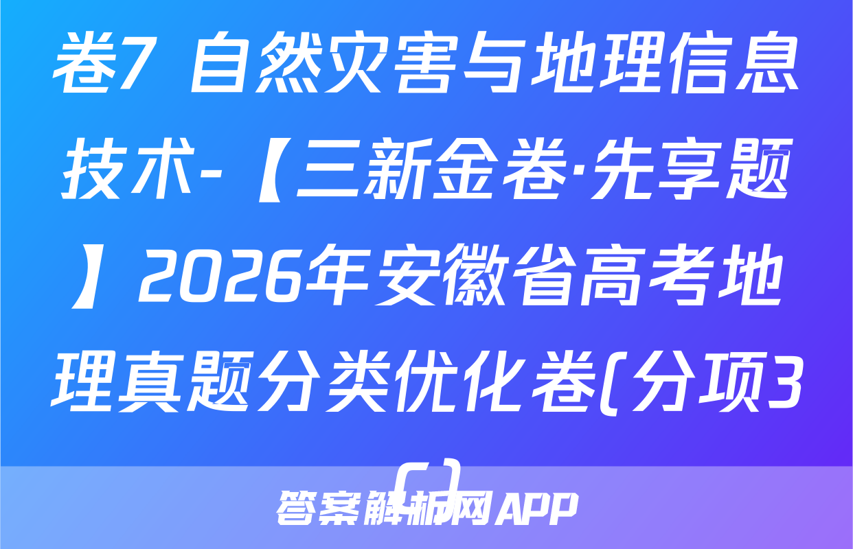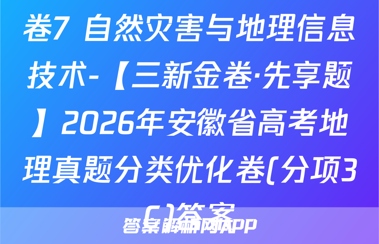 卷7 自然灾害与地理信息技术-【三新金卷·先享题】2026年安徽省高考地理真题分类优化卷(分项3C)答案