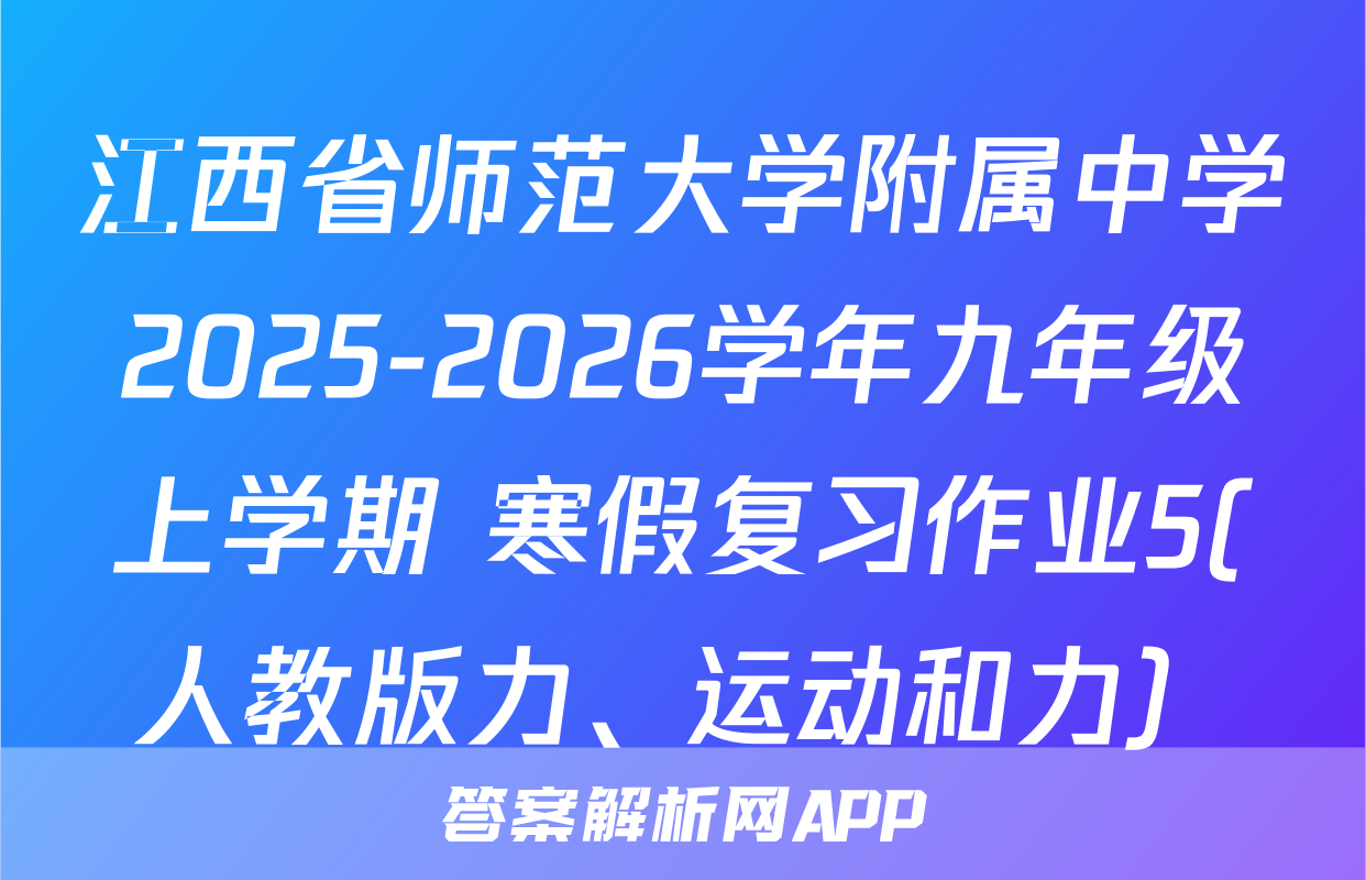 江西省师范大学附属中学2025-2026学年九年级上学期 寒假复习作业5(人教版力、运动和力)答案