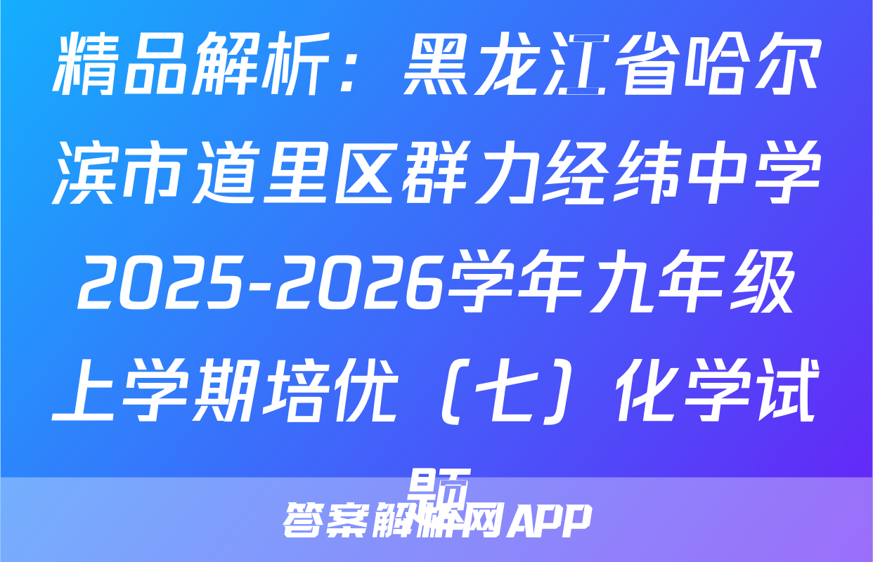 精品解析:黑龙江省哈尔滨市道里区群力经纬中学2025-2026学年九年级上学期培优(七)化学试题