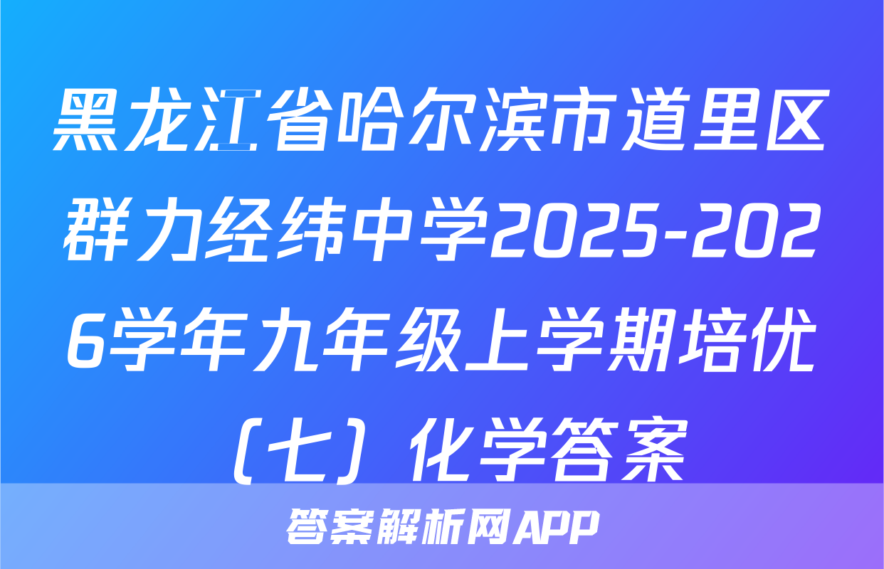 黑龙江省哈尔滨市道里区群力经纬中学2025-2026学年九年级上学期培优(七)化学答案