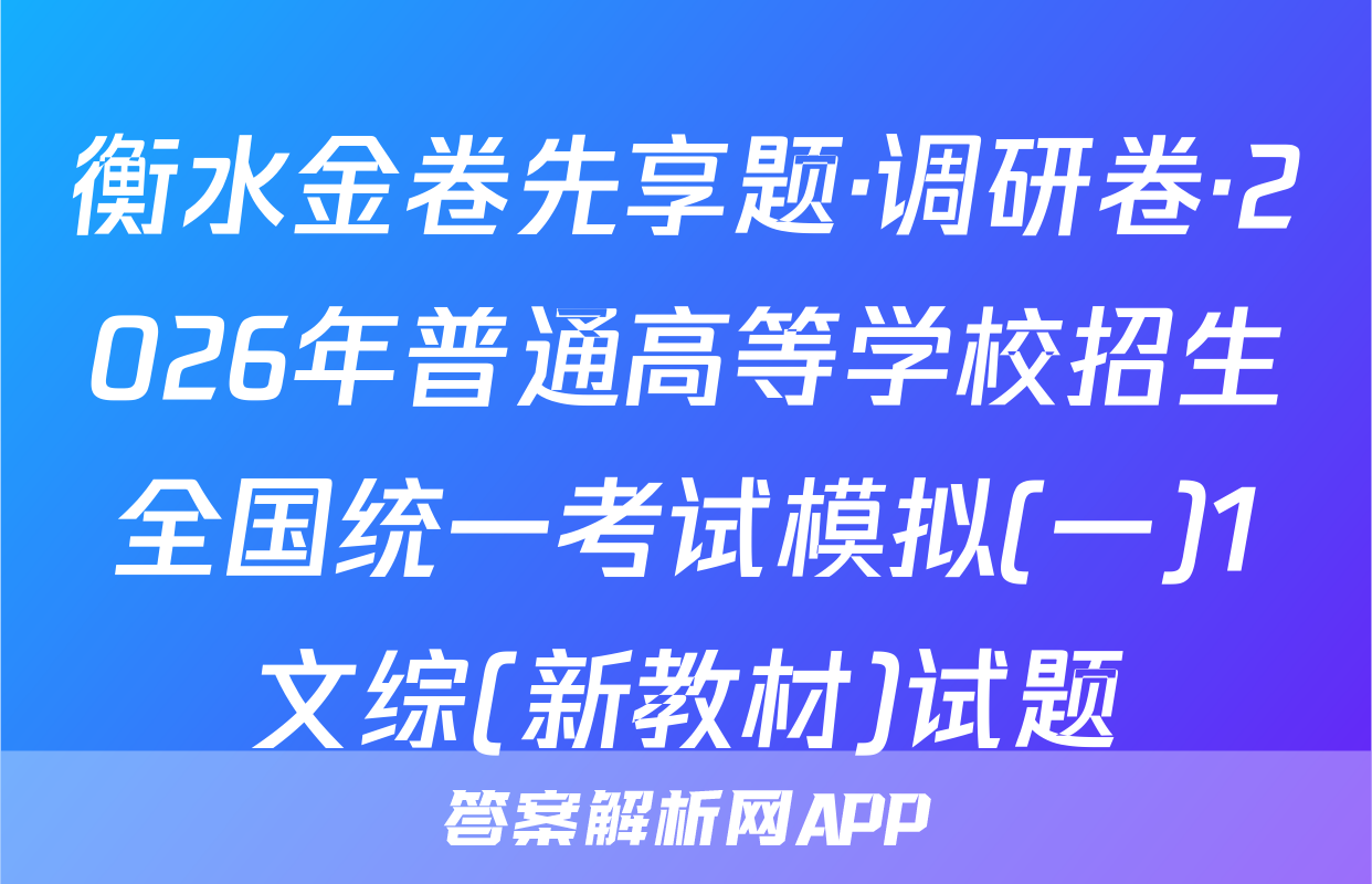 衡水金卷先享题·调研卷·2026年普通高等学校招生全国统一考试模拟(一)1文综(新教材)试题