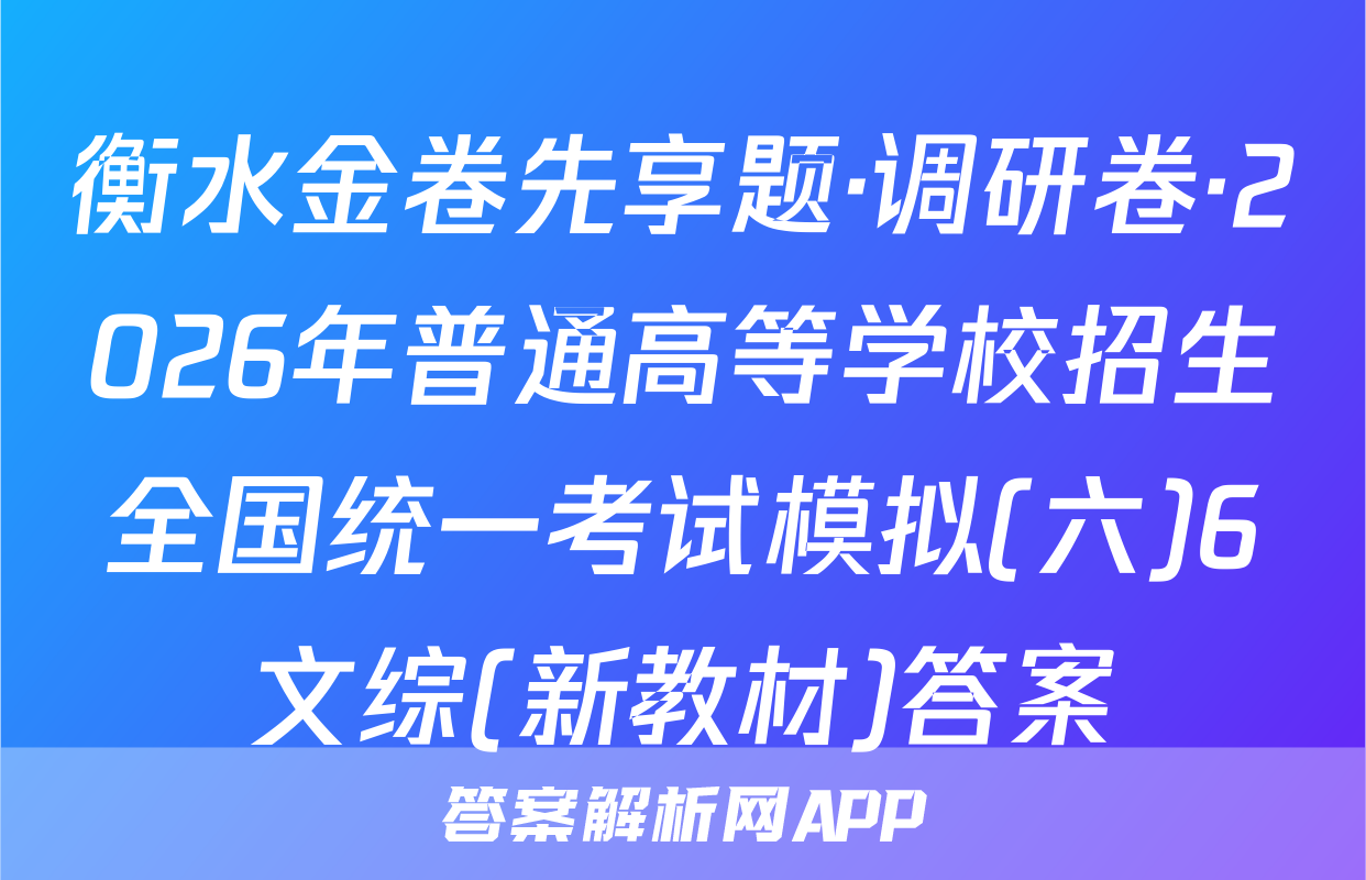 衡水金卷先享题·调研卷·2026年普通高等学校招生全国统一考试模拟(六)6文综(新教材)答案