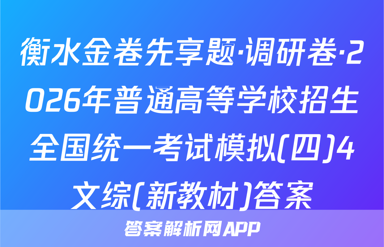 衡水金卷先享题·调研卷·2026年普通高等学校招生全国统一考试模拟(四)4文综(新教材)答案