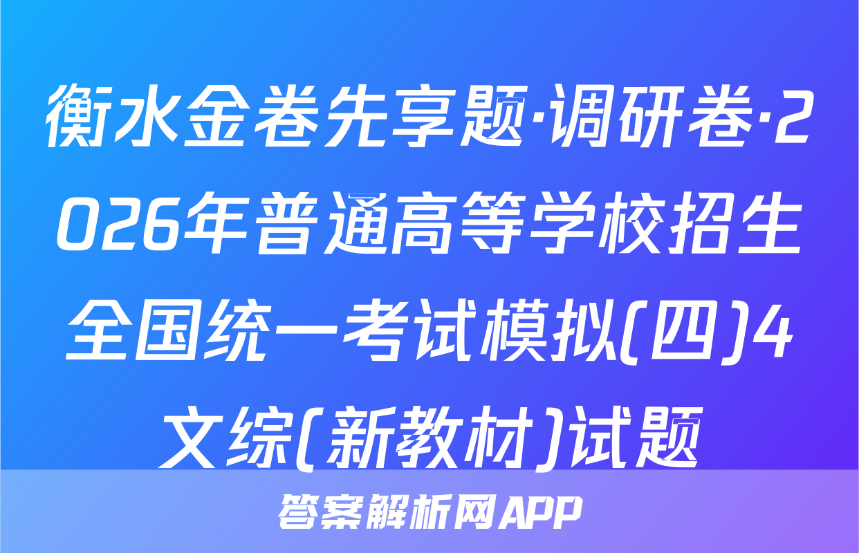衡水金卷先享题·调研卷·2026年普通高等学校招生全国统一考试模拟(四)4文综(新教材)试题