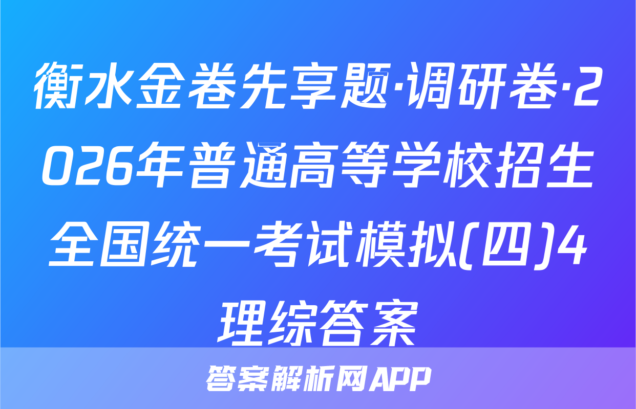衡水金卷先享题·调研卷·2026年普通高等学校招生全国统一考试模拟(四)4理综答案