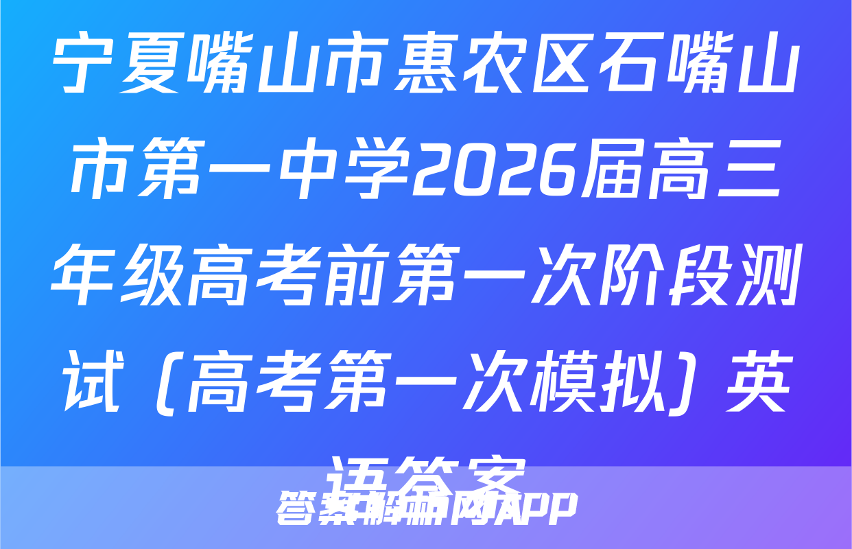 宁夏嘴山市惠农区石嘴山市第一中学2026届高三年级高考前第一次阶段测试 (高考第一次模拟) 英语答案