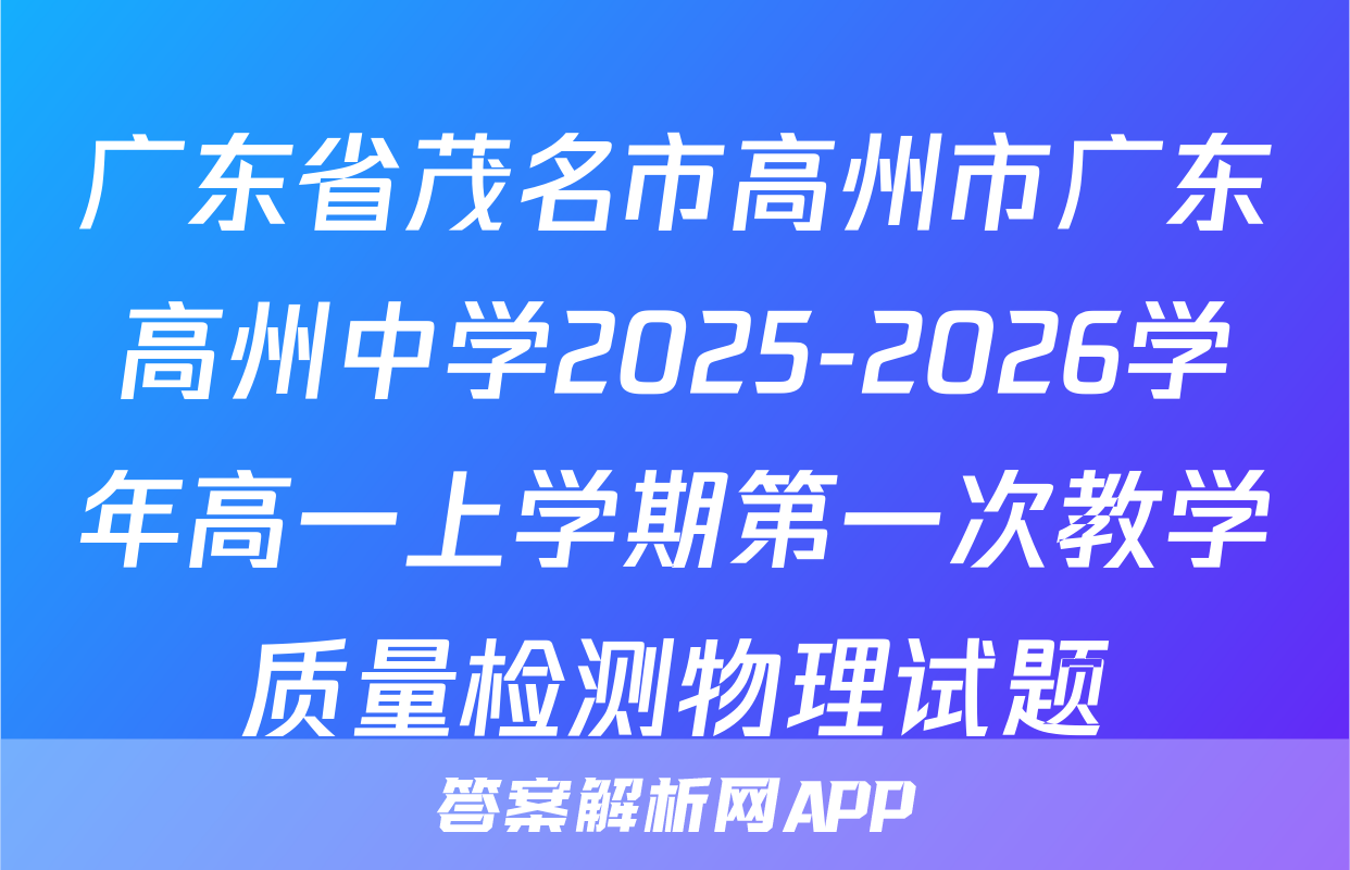 广东省茂名市高州市广东高州中学2025-2026学年高一上学期第一次教学质量检测物理试题