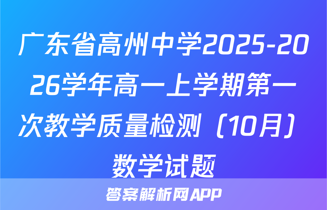 广东省高州中学2025-2026学年高一上学期第一次教学质量检测(10月)数学试题
