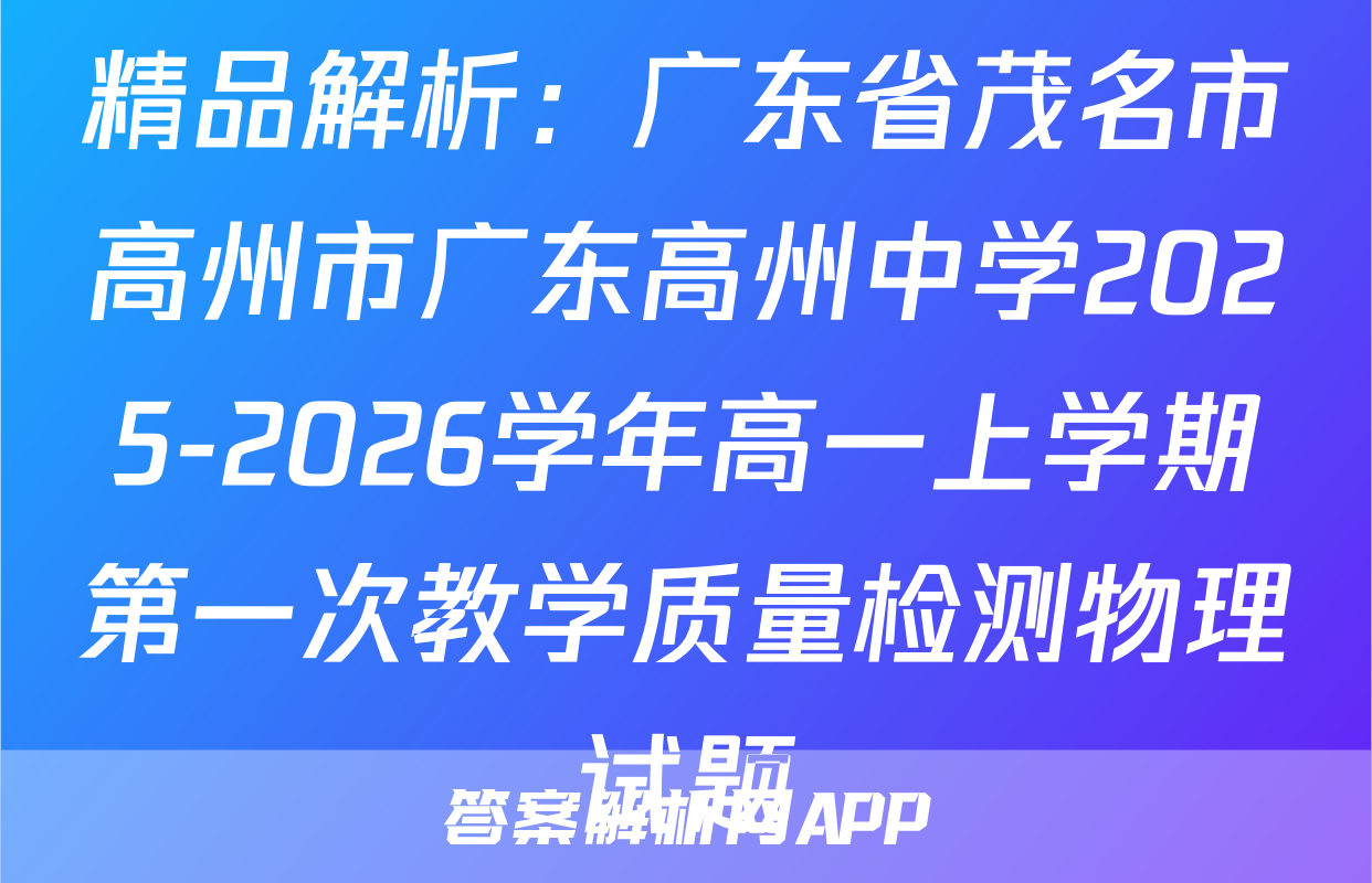 精品解析:广东省茂名市高州市广东高州中学2025-2026学年高一上学期第一次教学质量检测物理试题