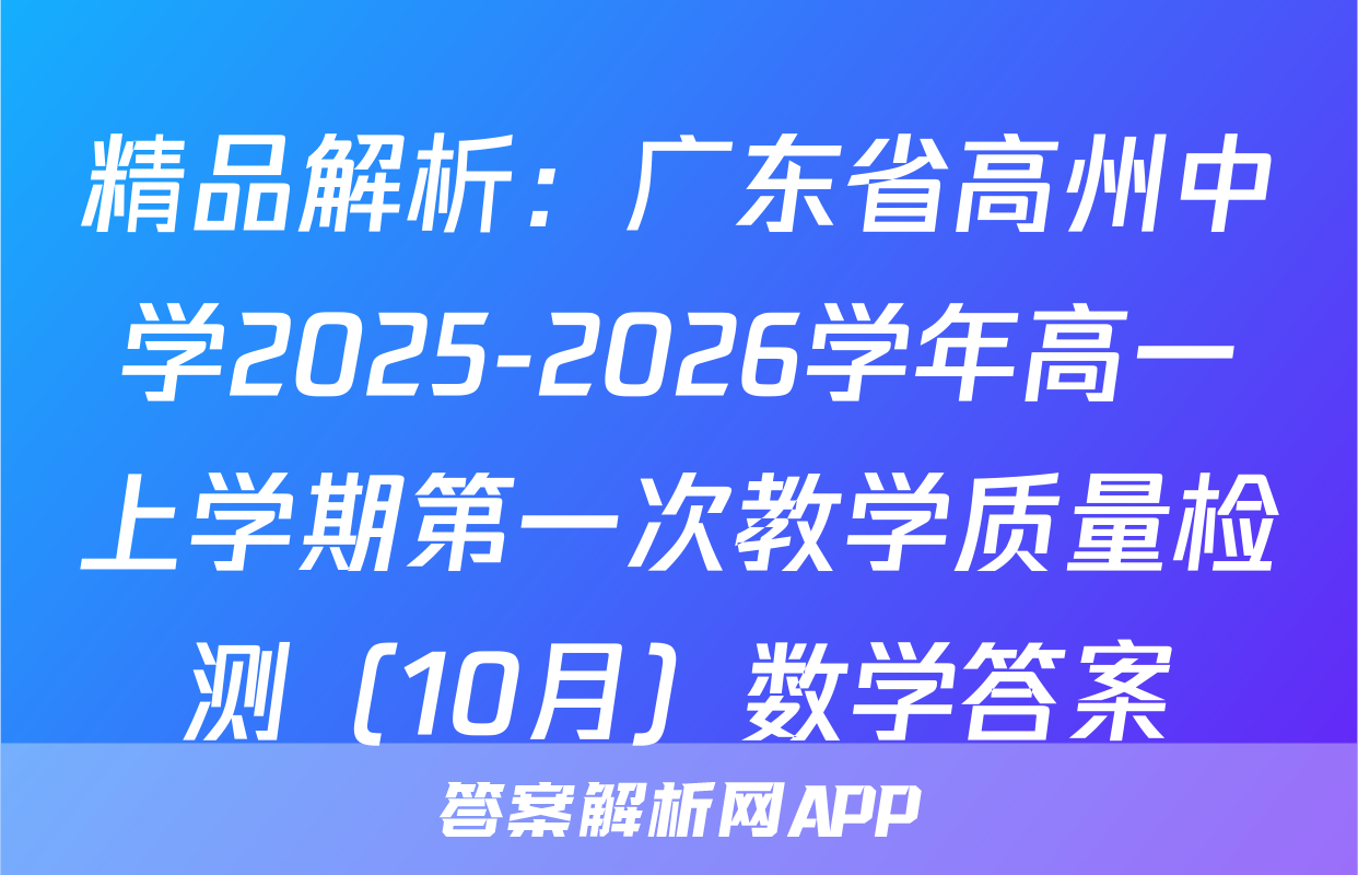 精品解析:广东省高州中学2025-2026学年高一上学期第一次教学质量检测(10月)数学答案