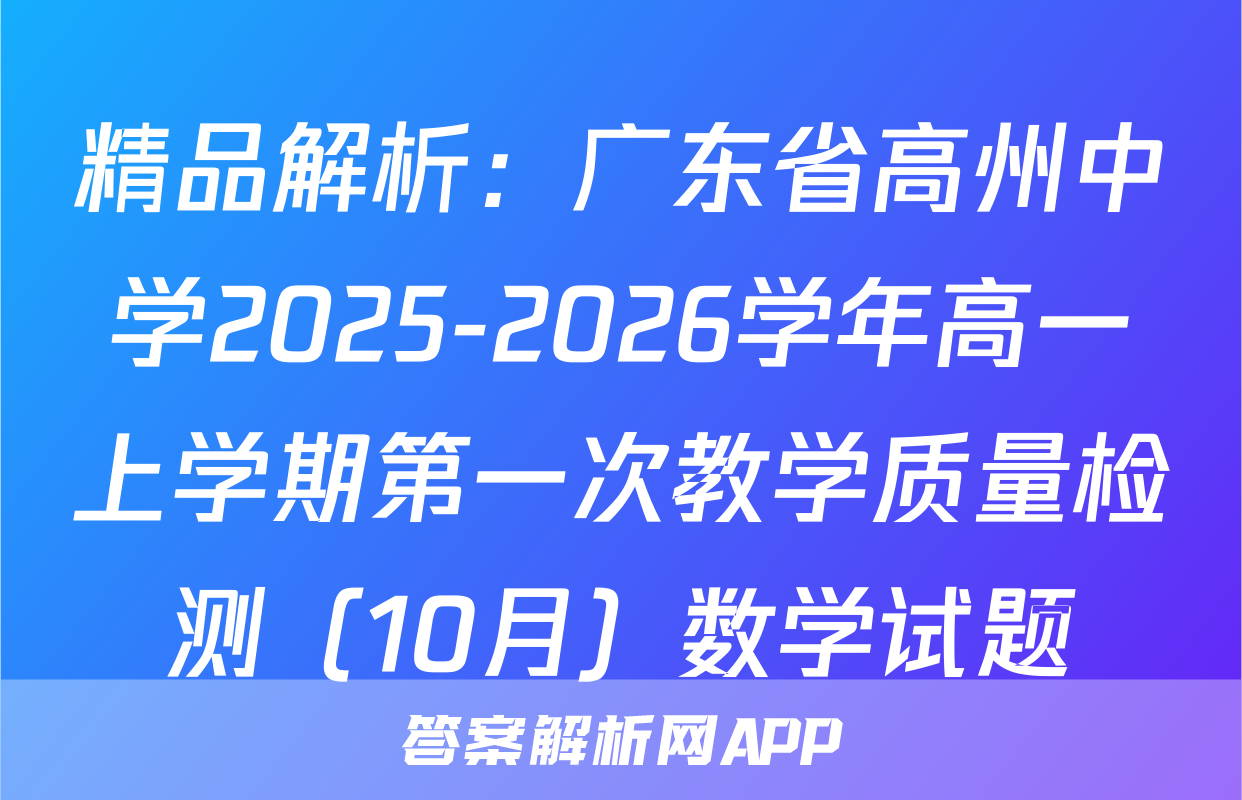 精品解析:广东省高州中学2025-2026学年高一上学期第一次教学质量检测(10月)数学试题