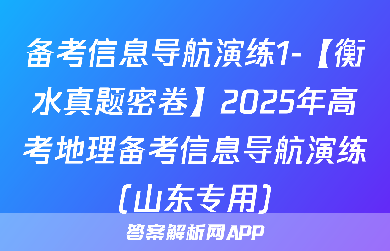 备考信息导航演练1-【衡水真题密卷】2025年高考地理备考信息导航演练(山东专用)