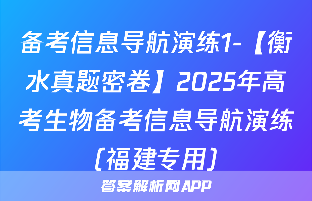 备考信息导航演练1-【衡水真题密卷】2025年高考生物备考信息导航演练(福建专用)答案