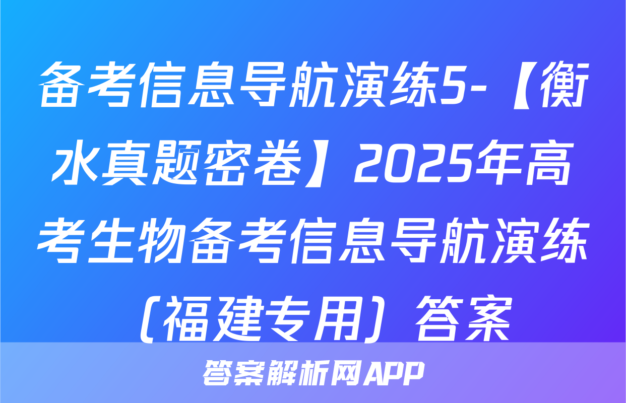 备考信息导航演练5-【衡水真题密卷】2025年高考生物备考信息导航演练(福建专用)答案