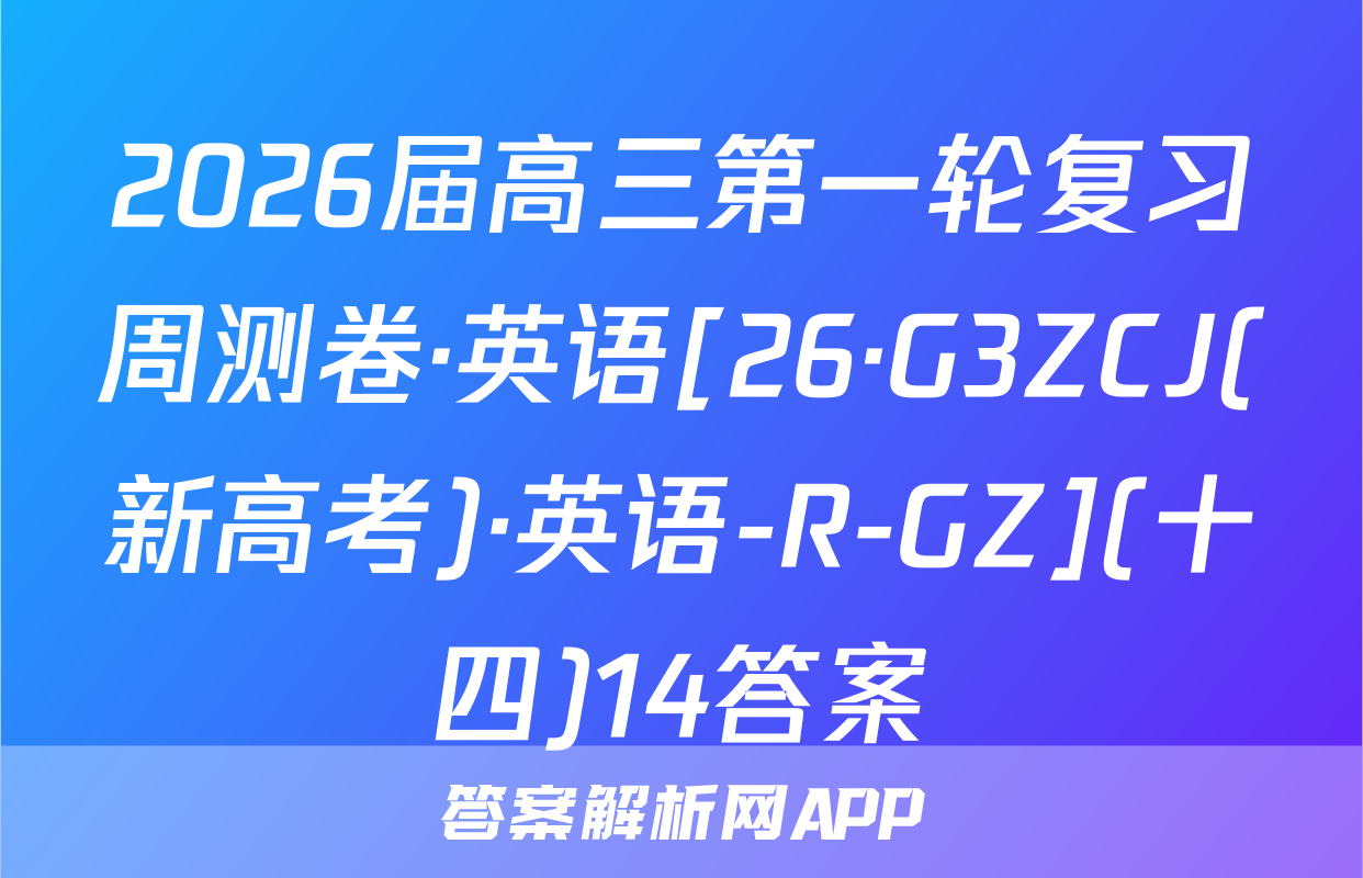 2026届高三第一轮复习周测卷·英语[26·G3ZCJ(新高考)·英语-R-GZ](十四)14答案