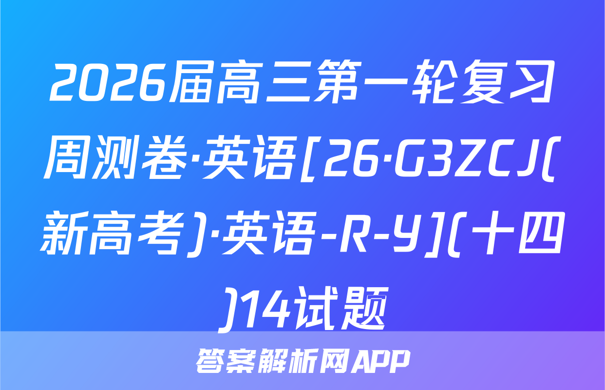 2026届高三第一轮复习周测卷·英语[26·G3ZCJ(新高考)·英语-R-Y](十四)14试题