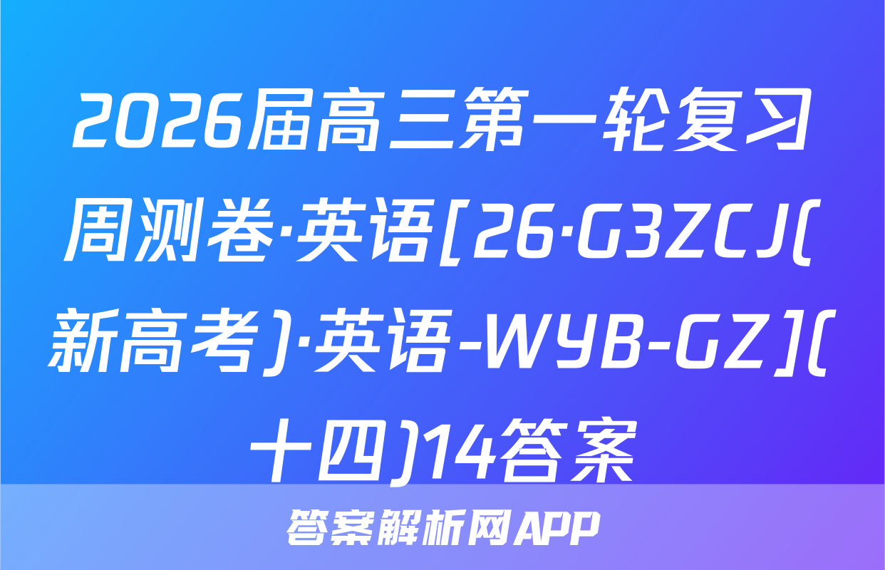 2026届高三第一轮复习周测卷·英语[26·G3ZCJ(新高考)·英语-WYB-GZ](十四)14答案