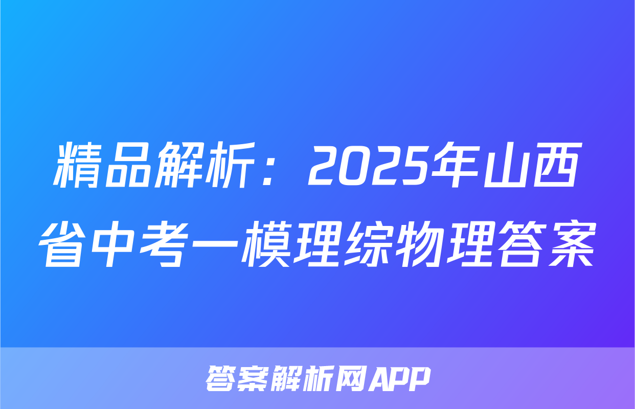 精品解析:2025年山西省中考一模理综物理答案