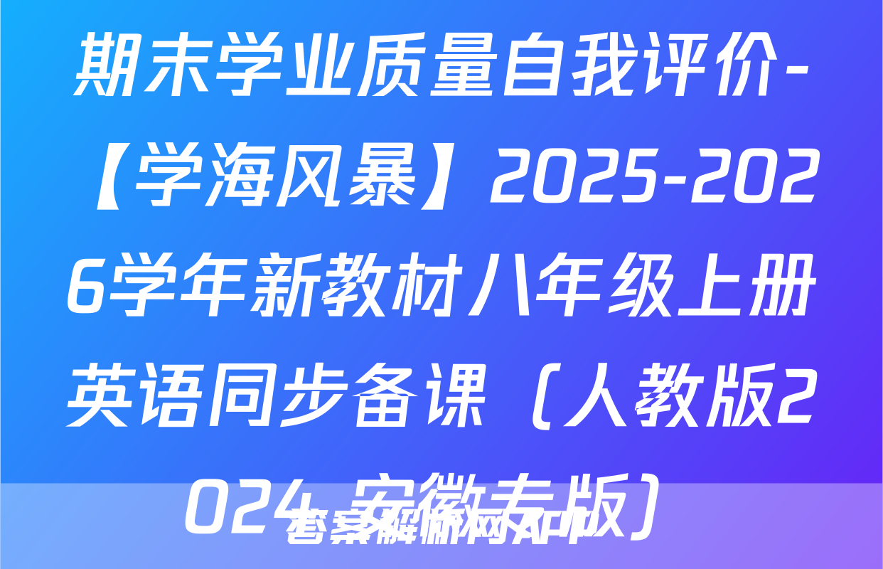 期末学业质量自我评价-【学海风暴】2025-2026学年新教材八年级上册英语同步备课(人教版2024 安徽专版)