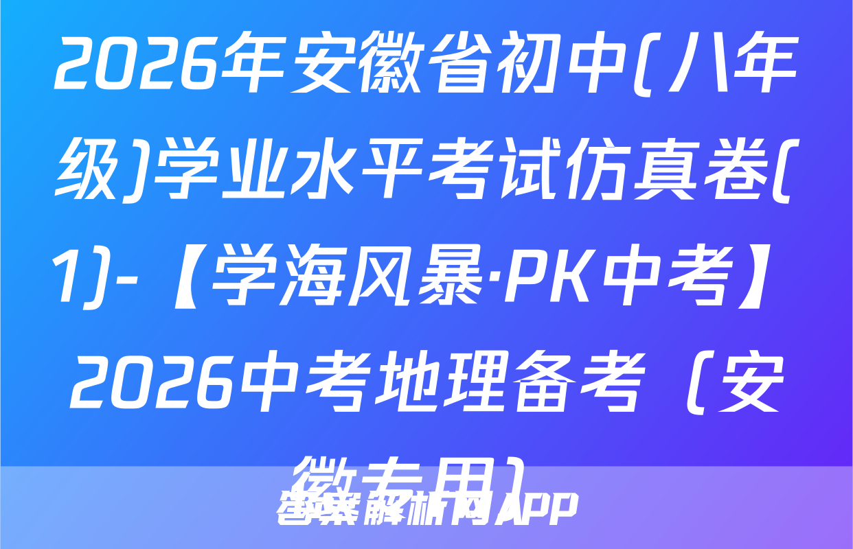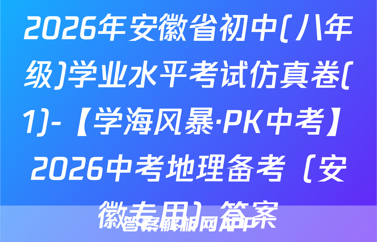 2026年安徽省初中(八年级)学业水平考试仿真卷(1)-【学海风暴·PK中考】2026中考地理备考(安徽专用)