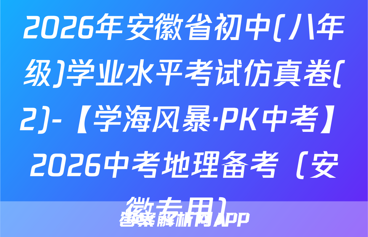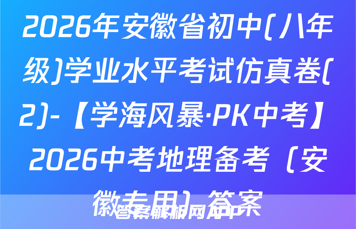 2026年安徽省初中(八年级)学业水平考试仿真卷(2)-【学海风暴·PK中考】2026中考地理备考(安徽专用)