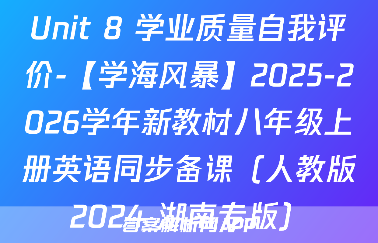 Unit 8 学业质量自我评价-【学海风暴】2025-2026学年新教材八年级上册英语同步备课(人教版2024 湖南专版)