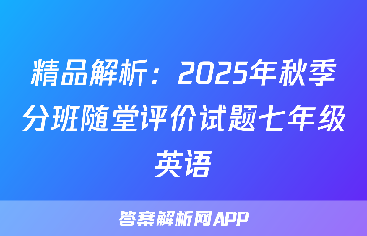 精品解析:2025年秋季分班随堂评价试题七年级英语