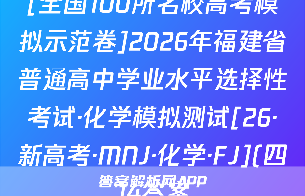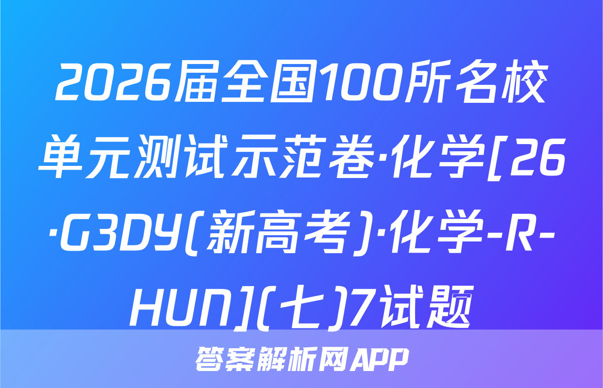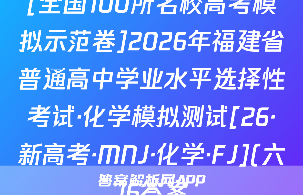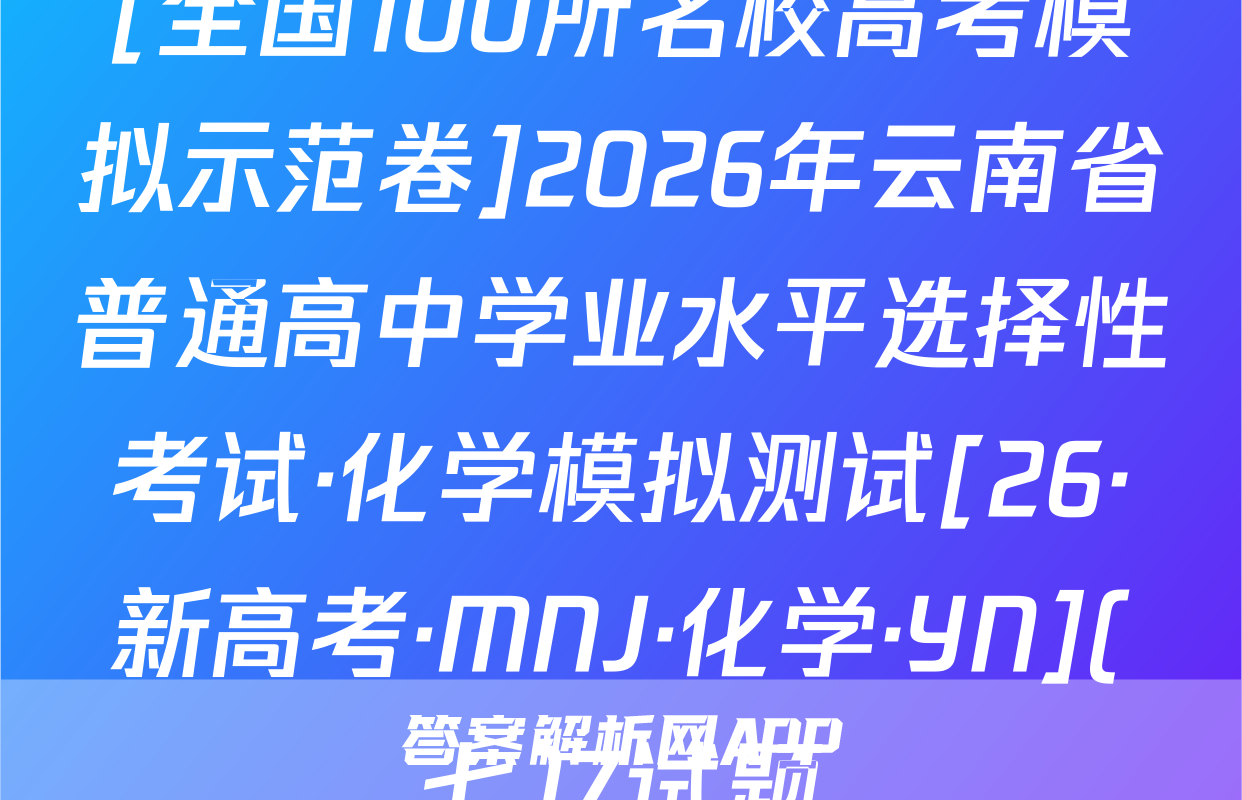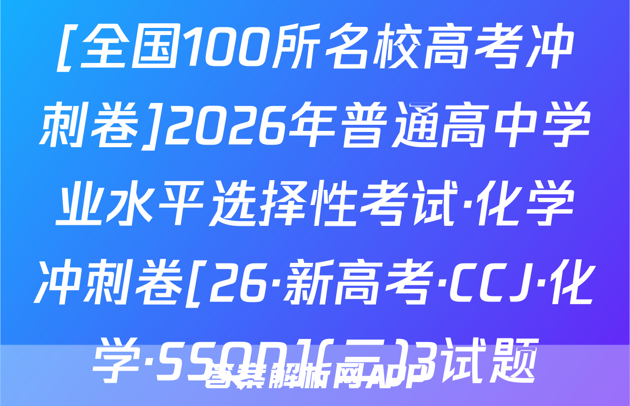 全围100所名位高当冲刺卷按秘密级事项管理★启用前4.生活中处处都有化学。下列离子方程式与对应事实不相符的是A2026年普通高中学业水平选择性考试A漂白粉溶液在空气中漂白性增强,C0+C0,+H,0一HC0+HC0。化学冲刺卷(二)B.用FeS去除工业废水中的Cu2+,Cu+FeS一CuS+FeC,家庭厨卫固体管道疏通剂(A1粉和NaOH)的疏通原理:2AN+2OH十6H,0—2[A1(OH)]+3H2↑本试卷共100分考试时间75分钟注意事项!D,医务人员常用疏酸酸化的KMO,溶液和双氧水紧急制氧:2MnO,+5H,O,十6H+—2Mn2++502个+8H,01答题前,考生务必将自己的姓名、准考证号填写在答题卡上。2回答选择题时,选出每小题答案后,用铅笔把答题卡上对应题目的答案标号涂黑。下列有关物质性质的解释错误的是☑选项如需改动,用橡皮擦干净后,再选涂其他答案标号。回答非选择题时,将答案写在答题卡性质A解释上。写在本试卷上无效。白磷(P,)的性质比氮气活泼3.考试结束后,将本试卷和答题卡一并交回。N=N的键能大延展性:金属Na>NaCl晶体金属Na中存在“电子气”可能用到的相对原子质量:H1C12N14016Na23Si28C135.5Cu64吸附选择性:沸石分子筛能吸附八,却难吸附O2沸石分子筛的孔道尺寸与N,分子直Zn 65 Br 80 Ce 140径匹配一、选择题:本题共14小题,每小题3分,共42分。在每小题给出的四个选项中,只有沸点:对羟基苯甲酸>邻羟基苯甲酸一项是符合题目要求的。6.M是-对羟基苯甲酸存在分子内氢键1.新材料的开发与应用是推动现代工业和科技发展的关键。下列说法正确的是已种重要的有机合成中间体,可由如下两种方法制备。下列说法错误的是OHA“嫦娥五号”探测器带回的月壤中含有3He,3He与He互为同素异形体CH,CH-CH H CHCH-CHC CH.-CHCH.CH0AB.我国自主研发的硅基光伏电池,其核心材料硅属于半导体材料C.汽车上使用的钢化玻璃属于新型非金属材料MP方法AM的化学名称为1-氯2丙醇方法二D.用于制作航天服的聚四氟乙烯材料属于天然有机高分子材料2.化学用语是化学学科的通用语言。下列化学用语的表述正确的是B.两种方法涉及反应的反应类型相同A.葡萄糖的结构简式:CH,OH(CHOH),COHCC.可用酸性KMO,溶液鉴别N与MB中子数为12的氖核素:Ne线D.P发生加聚反应的产物为ECH2一CHC.次氯酸钙的电子式:[C:0:门Ca2*[:0:C1:]CH2CID基态C原子的结村示意国③升7,航空航天、地质勘探等领域需要大量的氧气。化学氧气发生器常利用反应①KMn0,+H,SO,+H,O2一K,SO,十MnSO,+O2↑+H,O(未配平)、反应3,化学与生活、科技密切相关。下列高分子材料的应用不合理的是②2KC10,二2KC1+30,个来获取高浓度氧气。下列说法正确的是VA用聚己内酯可降解材料制作外科手术缝合线A.MnO,中Mh显十7价,是Mh元素的最高价态,因此MnO,只具有氧化性B.用聚丙烯材料制作食品级微波加热专用餐盒BH,O,为含有非极性键的极性分子C,用聚氯乙烯材料制作长期接触食品的保鲜膜D.用透光性好的聚碳酸酯制作汽车挡风玻璃C,反应O①的离子方程式为2Mn0十6H十3H,0,一2Mn+十40,↑+6H,0D,反应①,反应②产生等量的O,时,转移的电子数相等⊙化学卷(三)第1页(共8页则【26,新高考·CC,化学·SSQN)8由W,X,Y,Z,R形成的一种离子液体的阴、阳离子的结构如图所示,WX、Y、乙、R为原子序数依次增大的短周期主族元素,这五种元素的原子序数之和为28。下列C0化学卷L第页失8页【26·新高考·CC·化学·SSQN】