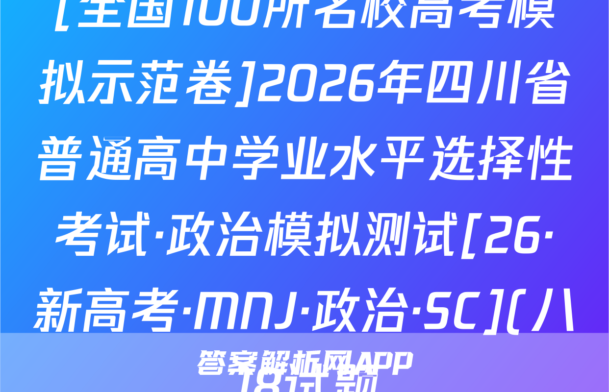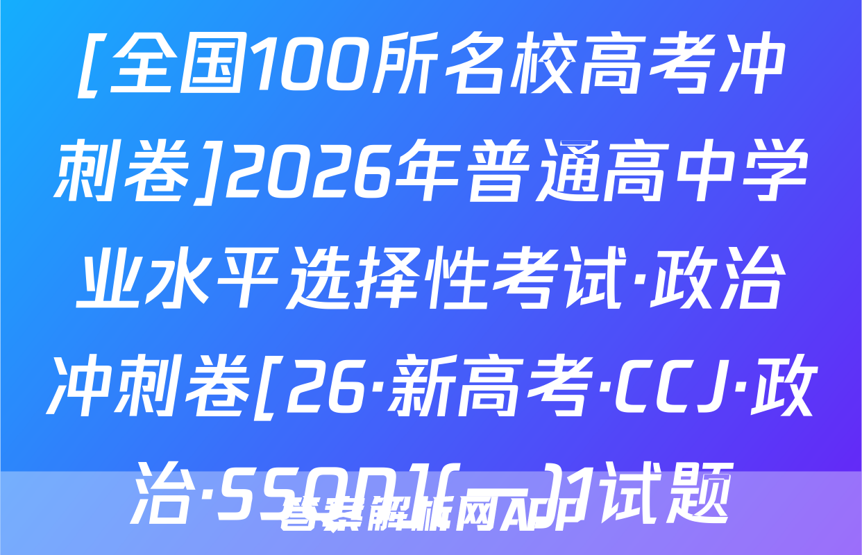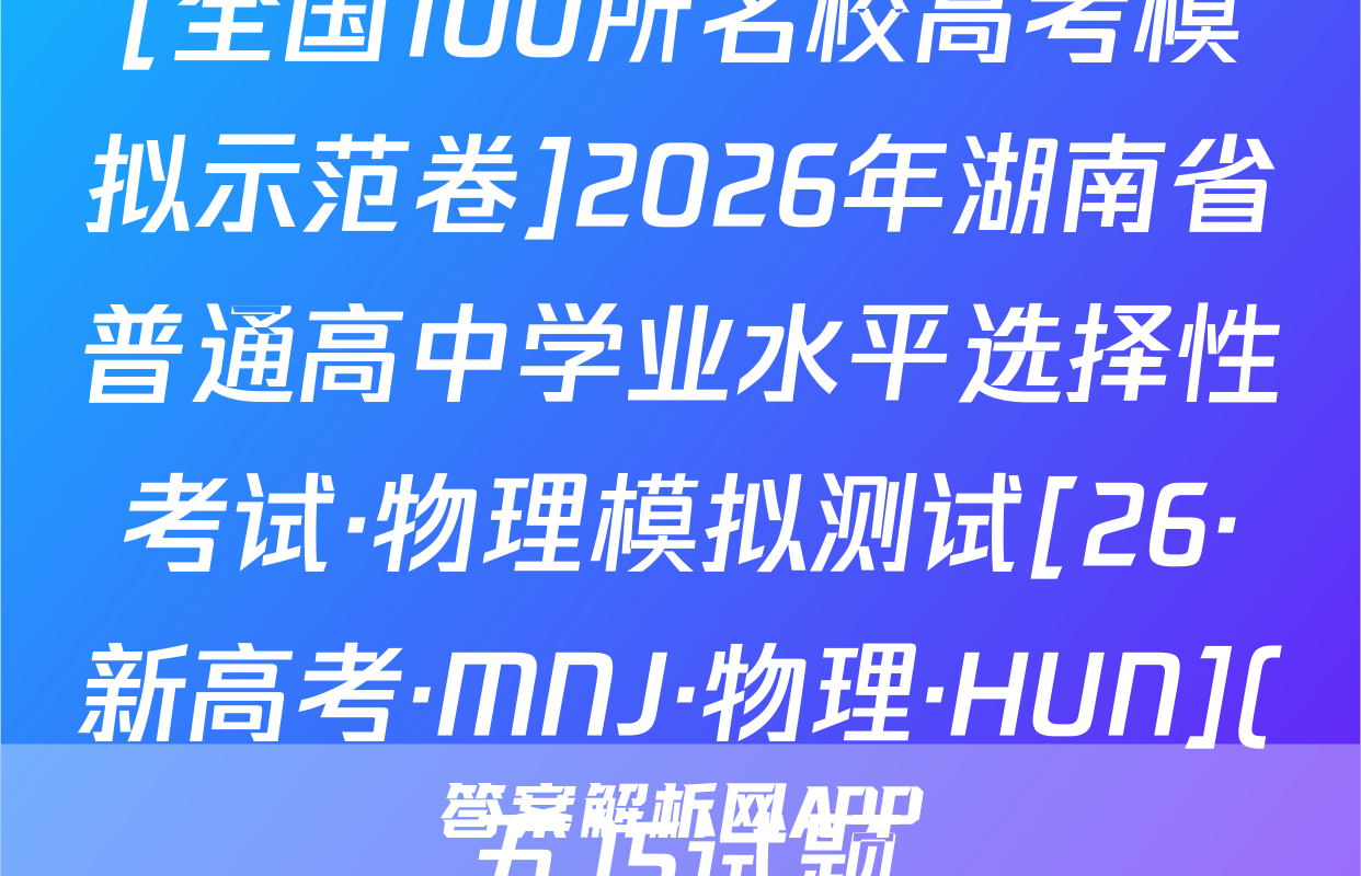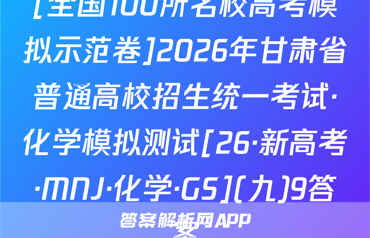 全围100所名位高当冲刺卷按秘密级事项管理★启用前4.生活中处处都有化学。下列离子方程式与对应事实不相符的是A2026年普通高中学业水平选择性考试A漂白粉溶液在空气中漂白性增强,C0+C0,+H,0一HC0+HC0。化学冲刺卷(二)B.用FeS去除工业废水中的Cu2+,Cu+FeS一CuS+FeC,家庭厨卫固体管道疏通剂(A1粉和NaOH)的疏通原理:2AN+2OH十6H,0—2[A1(OH)]+3H2↑本试卷共100分考试时间75分钟注意事项!D,医务人员常用疏酸酸化的KMO,溶液和双氧水紧急制氧:2MnO,+5H,O,十6H+—2Mn2++502个+8H,01答题前,考生务必将自己的姓名、准考证号填写在答题卡上。2回答选择题时,选出每小题答案后,用铅笔把答题卡上对应题目的答案标号涂黑。下列有关物质性质的解释错误的是☑选项如需改动,用橡皮擦干净后,再选涂其他答案标号。回答非选择题时,将答案写在答题卡性质A解释上。写在本试卷上无效。白磷(P,)的性质比氮气活泼3.考试结束后,将本试卷和答题卡一并交回。N=N的键能大延展性:金属Na>NaCl晶体金属Na中存在“电子气”可能用到的相对原子质量:H1C12N14016Na23Si28C135.5Cu64吸附选择性:沸石分子筛能吸附八,却难吸附O2沸石分子筛的孔道尺寸与N,分子直Zn 65 Br 80 Ce 140径匹配一、选择题:本题共14小题,每小题3分,共42分。在每小题给出的四个选项中,只有沸点:对羟基苯甲酸>邻羟基苯甲酸一项是符合题目要求的。6.M是-对羟基苯甲酸存在分子内氢键1.新材料的开发与应用是推动现代工业和科技发展的关键。下列说法正确的是已种重要的有机合成中间体,可由如下两种方法制备。下列说法错误的是OHA“嫦娥五号”探测器带回的月壤中含有3He,3He与He互为同素异形体CH,CH-CH H CHCH-CHC CH.-CHCH.CH0AB.我国自主研发的硅基光伏电池,其核心材料硅属于半导体材料C.汽车上使用的钢化玻璃属于新型非金属材料MP方法AM的化学名称为1-氯2丙醇方法二D.用于制作航天服的聚四氟乙烯材料属于天然有机高分子材料2.化学用语是化学学科的通用语言。下列化学用语的表述正确的是B.两种方法涉及反应的反应类型相同A.葡萄糖的结构简式:CH,OH(CHOH),COHCC.可用酸性KMO,溶液鉴别N与MB中子数为12的氖核素:Ne线D.P发生加聚反应的产物为ECH2一CHC.次氯酸钙的电子式:[C:0:门Ca2*[:0:C1:]CH2CID基态C原子的结村示意国③升7,航空航天、地质勘探等领域需要大量的氧气。化学氧气发生器常利用反应①KMn0,+H,SO,+H,O2一K,SO,十MnSO,+O2↑+H,O(未配平)、反应3,化学与生活、科技密切相关。下列高分子材料的应用不合理的是②2KC10,二2KC1+30,个来获取高浓度氧气。下列说法正确的是VA用聚己内酯可降解材料制作外科手术缝合线A.MnO,中Mh显十7价,是Mh元素的最高价态,因此MnO,只具有氧化性B.用聚丙烯材料制作食品级微波加热专用餐盒BH,O,为含有非极性键的极性分子C,用聚氯乙烯材料制作长期接触食品的保鲜膜D.用透光性好的聚碳酸酯制作汽车挡风玻璃C,反应O①的离子方程式为2Mn0十6H十3H,0,一2Mn+十40,↑+6H,0D,反应①,反应②产生等量的O,时,转移的电子数相等⊙化学卷(三)第1页(共8页则【26,新高考·CC,化学·SSQN)8由W,X,Y,Z,R形成的一种离子液体的阴、阳离子的结构如图所示,WX、Y、乙、R为原子序数依次增大的短周期主族元素,这五种元素的原子序数之和为28。下列C0化学卷L第页失8页【26·新高考·CC·化学·SSQN】