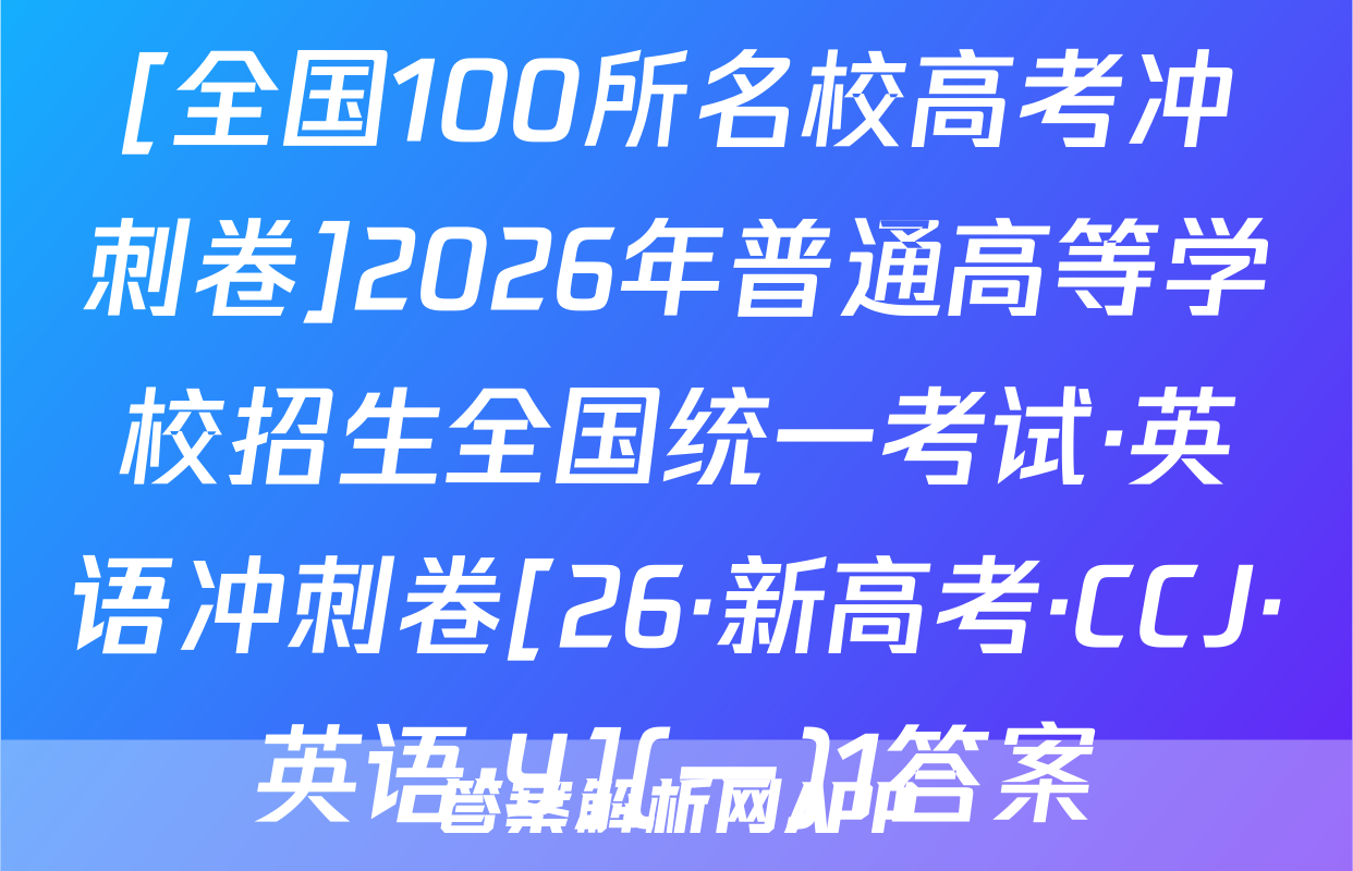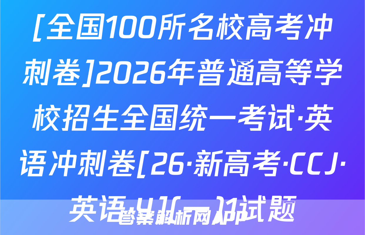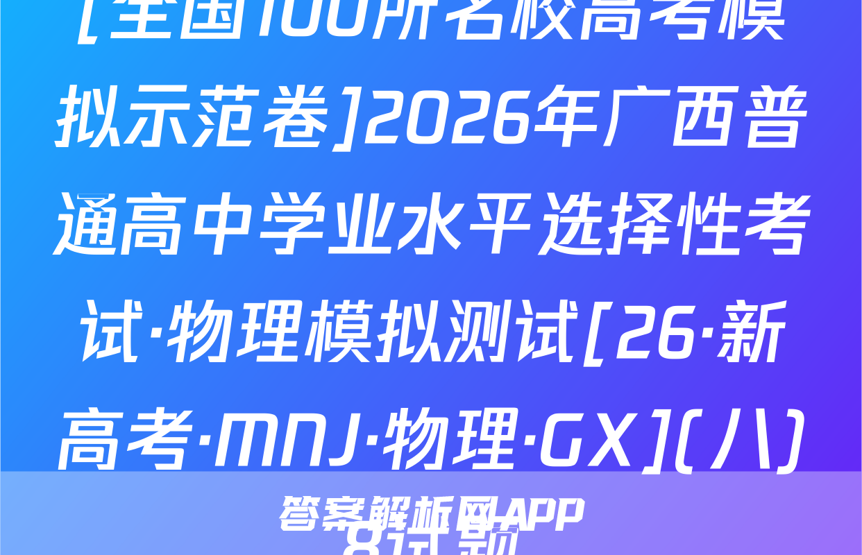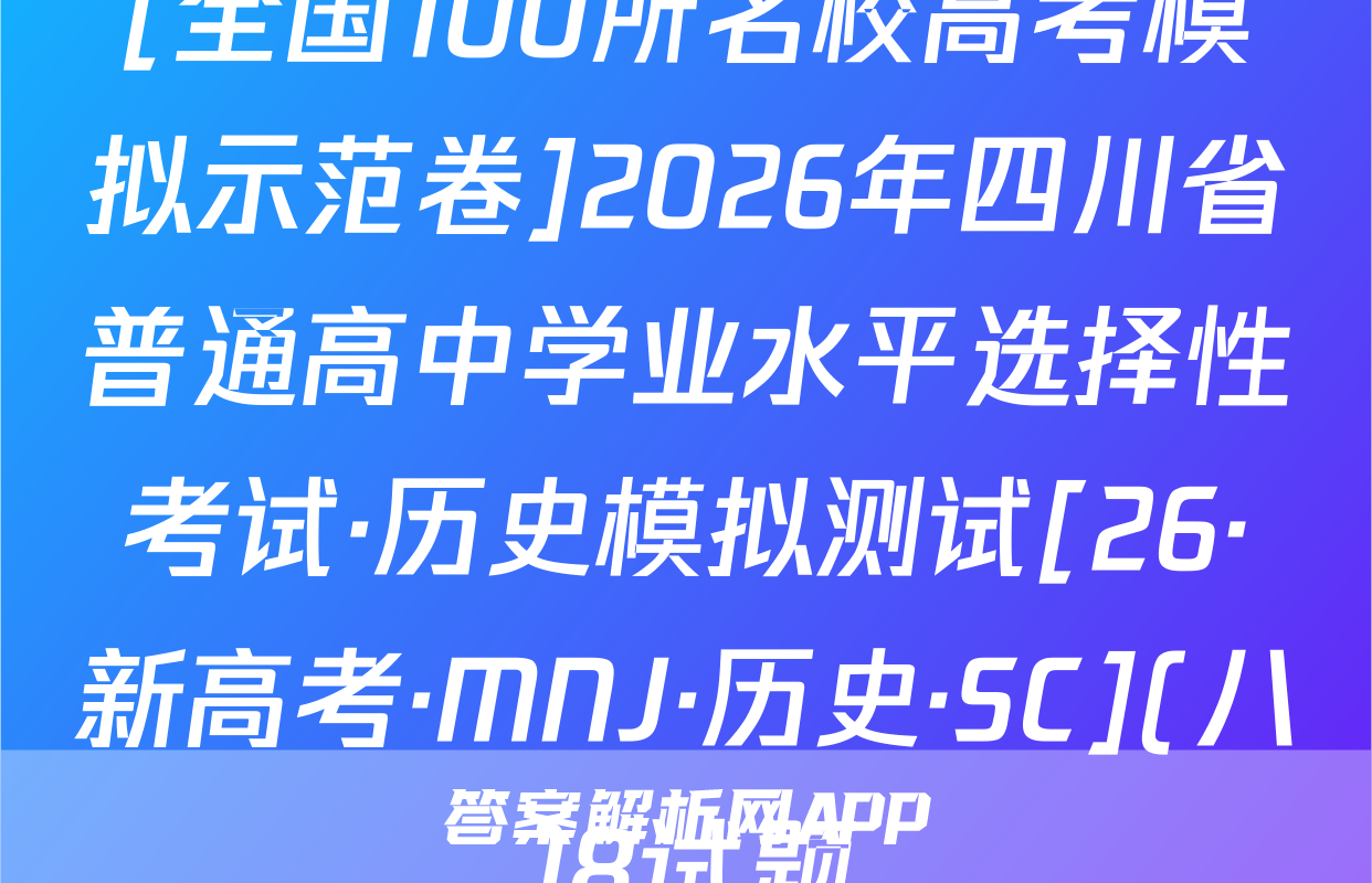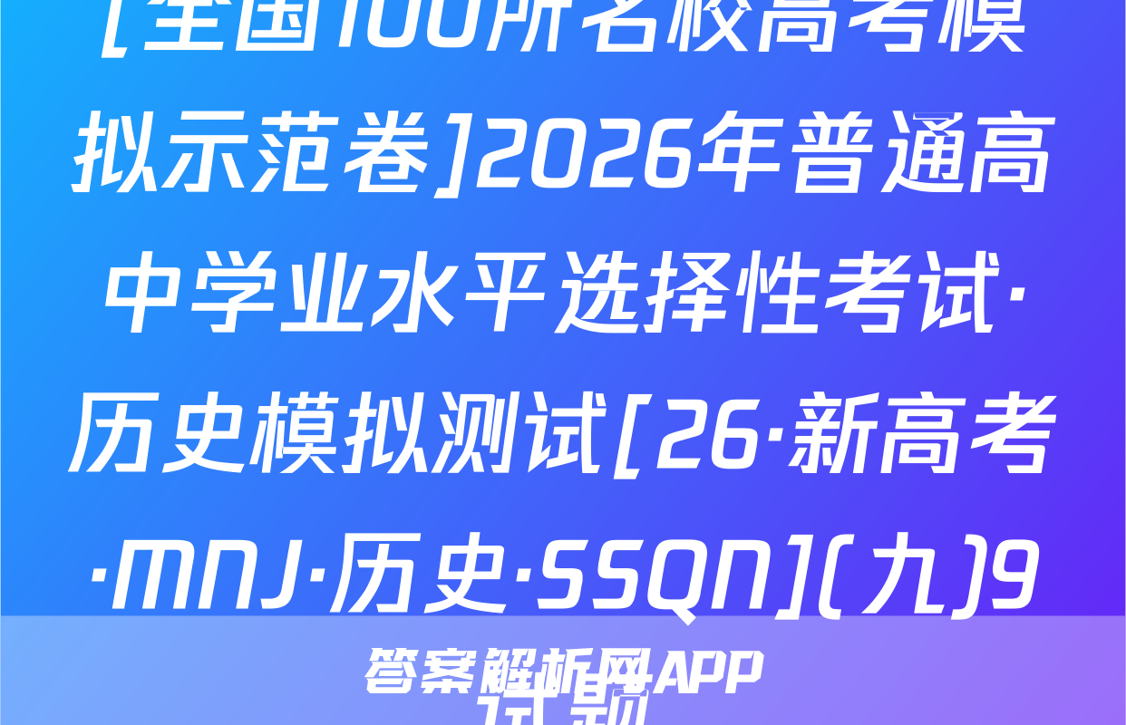 全围100所名位高当冲刺卷按秘密级事项管理★启用前4.生活中处处都有化学。下列离子方程式与对应事实不相符的是A2026年普通高中学业水平选择性考试A漂白粉溶液在空气中漂白性增强,C0+C0,+H,0一HC0+HC0。化学冲刺卷(二)B.用FeS去除工业废水中的Cu2+,Cu+FeS一CuS+FeC,家庭厨卫固体管道疏通剂(A1粉和NaOH)的疏通原理:2AN+2OH十6H,0—2[A1(OH)]+3H2↑本试卷共100分考试时间75分钟注意事项!D,医务人员常用疏酸酸化的KMO,溶液和双氧水紧急制氧:2MnO,+5H,O,十6H+—2Mn2++502个+8H,01答题前,考生务必将自己的姓名、准考证号填写在答题卡上。2回答选择题时,选出每小题答案后,用铅笔把答题卡上对应题目的答案标号涂黑。下列有关物质性质的解释错误的是☑选项如需改动,用橡皮擦干净后,再选涂其他答案标号。回答非选择题时,将答案写在答题卡性质A解释上。写在本试卷上无效。白磷(P,)的性质比氮气活泼3.考试结束后,将本试卷和答题卡一并交回。N=N的键能大延展性:金属Na>NaCl晶体金属Na中存在“电子气”可能用到的相对原子质量:H1C12N14016Na23Si28C135.5Cu64吸附选择性:沸石分子筛能吸附八,却难吸附O2沸石分子筛的孔道尺寸与N,分子直Zn 65 Br 80 Ce 140径匹配一、选择题:本题共14小题,每小题3分,共42分。在每小题给出的四个选项中,只有沸点:对羟基苯甲酸>邻羟基苯甲酸一项是符合题目要求的。6.M是-对羟基苯甲酸存在分子内氢键1.新材料的开发与应用是推动现代工业和科技发展的关键。下列说法正确的是已种重要的有机合成中间体,可由如下两种方法制备。下列说法错误的是OHA“嫦娥五号”探测器带回的月壤中含有3He,3He与He互为同素异形体CH,CH-CH H CHCH-CHC CH.-CHCH.CH0AB.我国自主研发的硅基光伏电池,其核心材料硅属于半导体材料C.汽车上使用的钢化玻璃属于新型非金属材料MP方法AM的化学名称为1-氯2丙醇方法二D.用于制作航天服的聚四氟乙烯材料属于天然有机高分子材料2.化学用语是化学学科的通用语言。下列化学用语的表述正确的是B.两种方法涉及反应的反应类型相同A.葡萄糖的结构简式:CH,OH(CHOH),COHCC.可用酸性KMO,溶液鉴别N与MB中子数为12的氖核素:Ne线D.P发生加聚反应的产物为ECH2一CHC.次氯酸钙的电子式:[C:0:门Ca2*[:0:C1:]CH2CID基态C原子的结村示意国③升7,航空航天、地质勘探等领域需要大量的氧气。化学氧气发生器常利用反应①KMn0,+H,SO,+H,O2一K,SO,十MnSO,+O2↑+H,O(未配平)、反应3,化学与生活、科技密切相关。下列高分子材料的应用不合理的是②2KC10,二2KC1+30,个来获取高浓度氧气。下列说法正确的是VA用聚己内酯可降解材料制作外科手术缝合线A.MnO,中Mh显十7价,是Mh元素的最高价态,因此MnO,只具有氧化性B.用聚丙烯材料制作食品级微波加热专用餐盒BH,O,为含有非极性键的极性分子C,用聚氯乙烯材料制作长期接触食品的保鲜膜D.用透光性好的聚碳酸酯制作汽车挡风玻璃C,反应O①的离子方程式为2Mn0十6H十3H,0,一2Mn+十40,↑+6H,0D,反应①,反应②产生等量的O,时,转移的电子数相等⊙化学卷(三)第1页(共8页则【26,新高考·CC,化学·SSQN)8由W,X,Y,Z,R形成的一种离子液体的阴、阳离子的结构如图所示,WX、Y、乙、R为原子序数依次增大的短周期主族元素,这五种元素的原子序数之和为28。下列C0化学卷L第页失8页【26·新高考·CC·化学·SSQN】