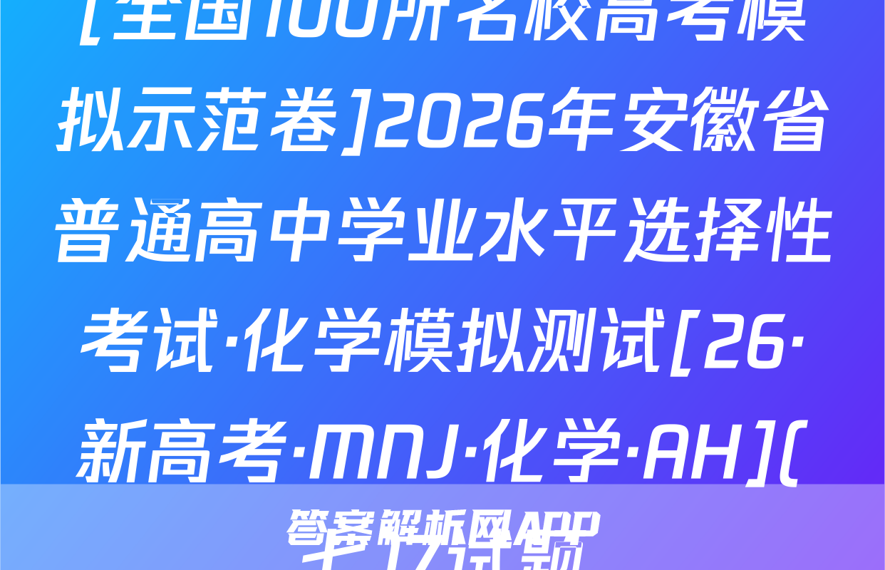 [全国100所名校高考模拟示范卷]2026年安徽省普通高中学业水平选择性考试·化学模拟测试[26·新高考·MNJ·化学·AH](七)7试题