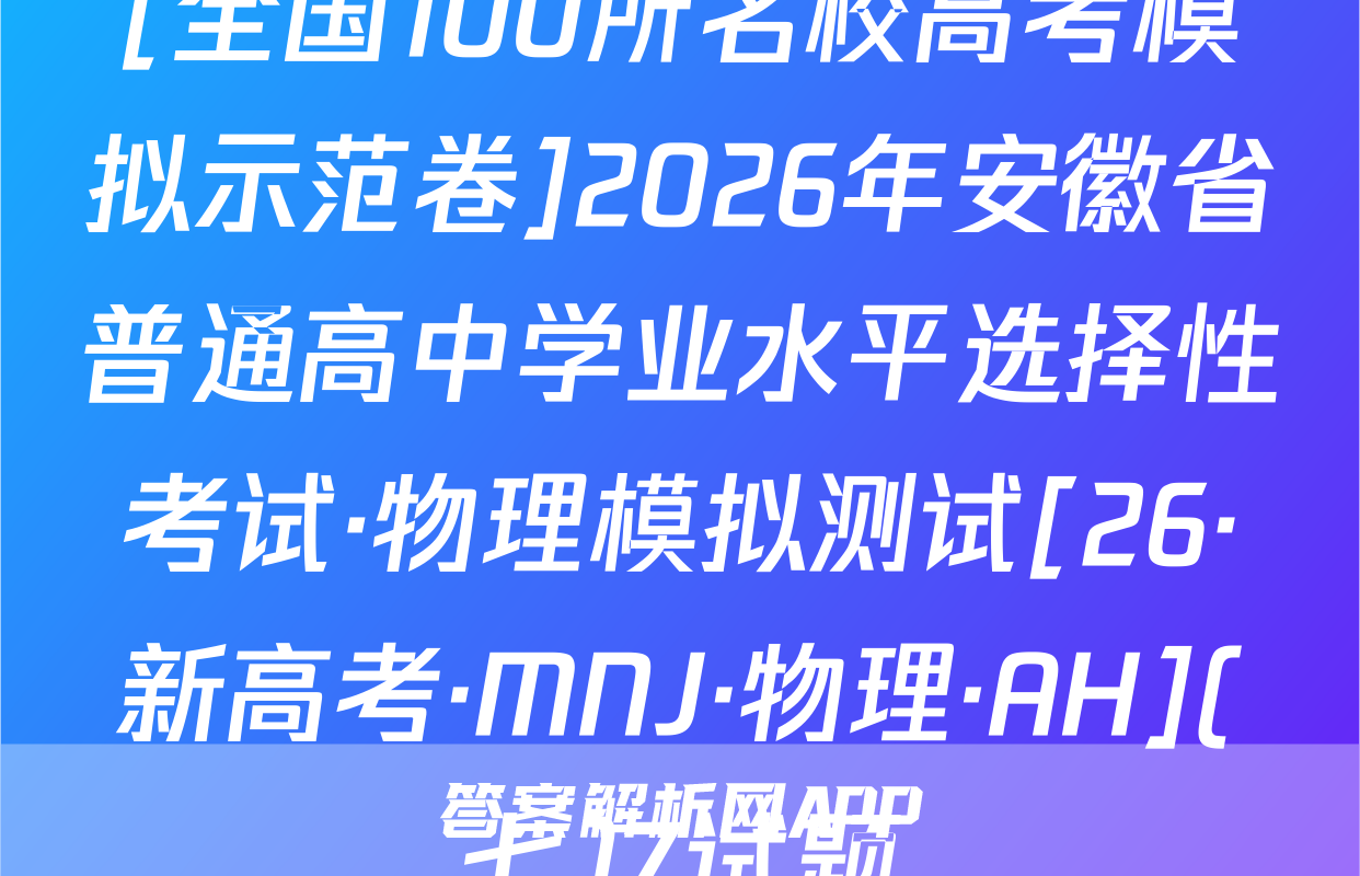 [全国100所名校高考模拟示范卷]2026年安徽省普通高中学业水平选择性考试·物理模拟测试[26·新高考·MNJ·物理·AH](七)7试题