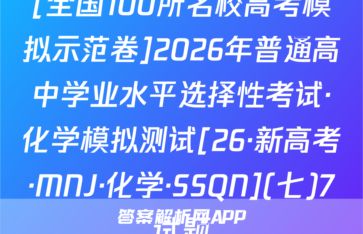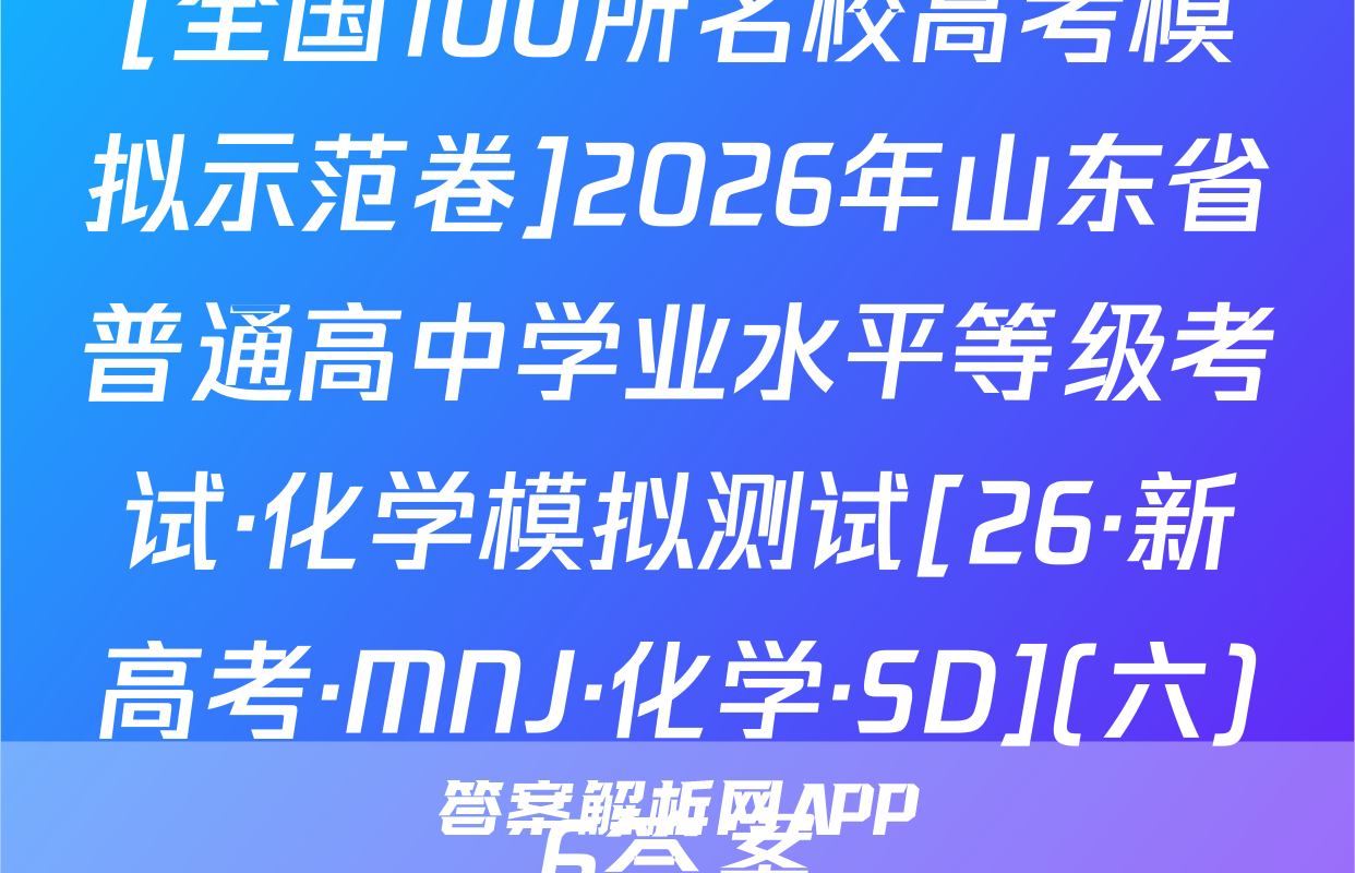 按秘密级事项管理★启用前2026年山东省普通高中学业水平等级考试化学模拟测试(三)注意事项:本试卷共100分考试时间90分钟1.答题前,考生务必将自己的姓名、准考证号填写在答题卡上。02.回答选择题时,选出每小题答案后,用铅笔把答题卡上对应题目的答案标号涂黑。如需改动,用橡皮擦干净后,再选涂其他答案标号。回答非选择题时,将答案写在答题卡上。写在本试卷上无效。3.考试结束后,将本试卷和答题卡一并交回。可能用到的相对原子质量:H1B11C12N14016Na23S32C135.5如Ca 40 Cu 64 Ga 70.As 75 Sr 88 Ag 108一、选择题:本题共10小题,每小题2分,共20分,在每小题给出的四个选项中,只一项是符合题目要求的。1.中国古代与现代的许多科学技术都与物质间的变化密切相关。下列过程没有涉化学变化的是A.蔡伦采用碱液蒸煮制浆法造纸B.烧制元青花瓷C.“雪龙2”号破冰船破冰D.《神农本草经》中记载的“石胆能化铁为铜”2.物质的性质决定其用途。下列说法错误的是A.BaSO4用作内服造影剂,体现了BaSO,的难溶性B.CaO能与SO2反应,可作为处理工业废气的脱硫剂线C.H2S可除去废水中的Pb2+,体现了H2S的还原性D.钛合金具有良好的生物相容性,可用作人造骨3.实验室安全至关重要。下列实验操作或处理方法正确的是A.制备乙烯时,不需向乙醇和浓硫酸的混合液中放入碎瓷片B.实验中未用完的金属钠、白磷不能放回原试剂瓶中C.洒出的酒精在实验台面燃烧起来,立即用嘴吹灭D.稀释浓硫酸时,将浓硫酸沿器壁缓慢倒人入水中并用玻璃棒不断搅拌4.下列化学用语正确的是A.SO2的VSEPR模型化学卷(三)第1页(共8页)【26·新高考·MNW·化学·SI