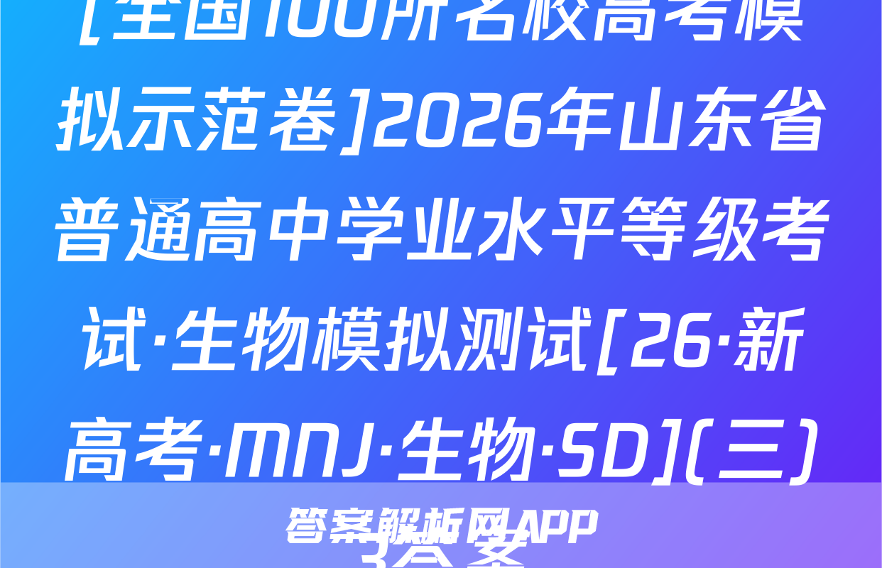 [全国100所名校高考模拟示范卷]2026年山东省普通高中学业水平等级考试·生物模拟测试[26·新高考·MNJ·生物·SD](三)3答案