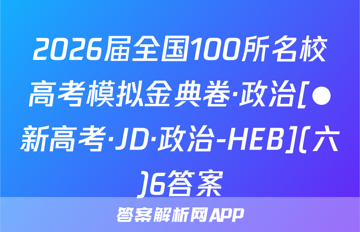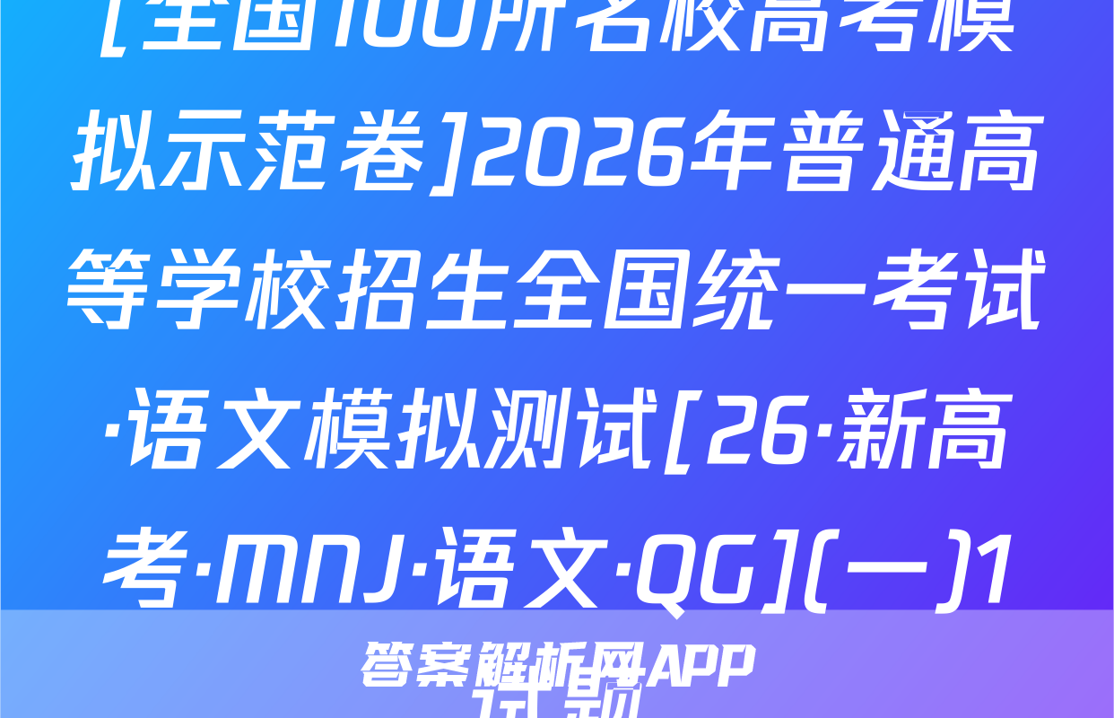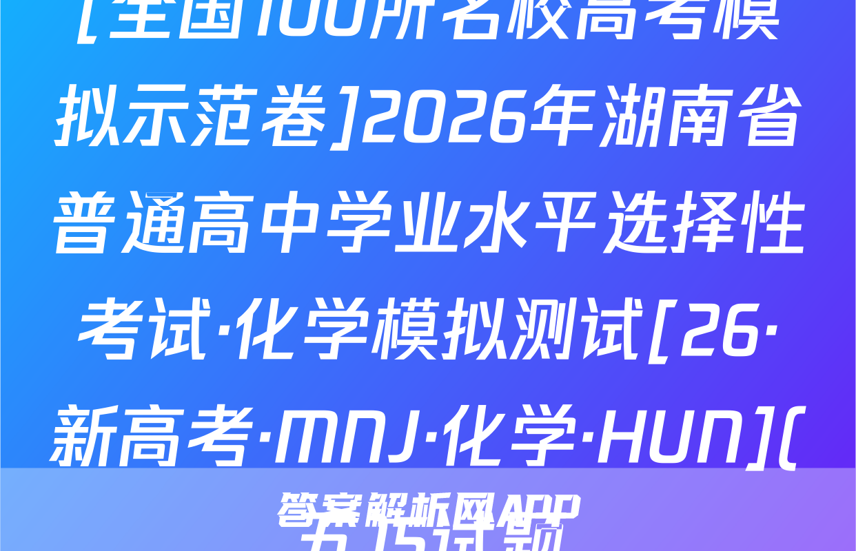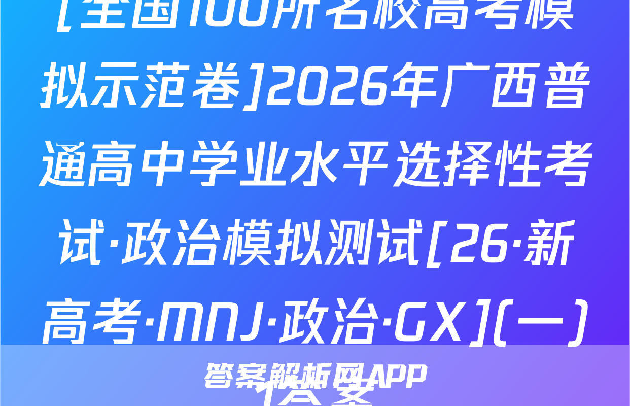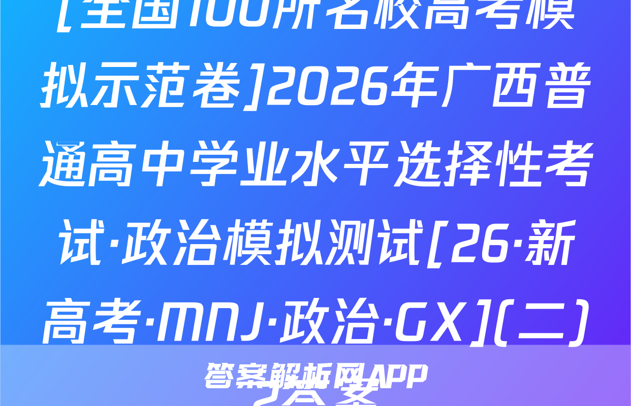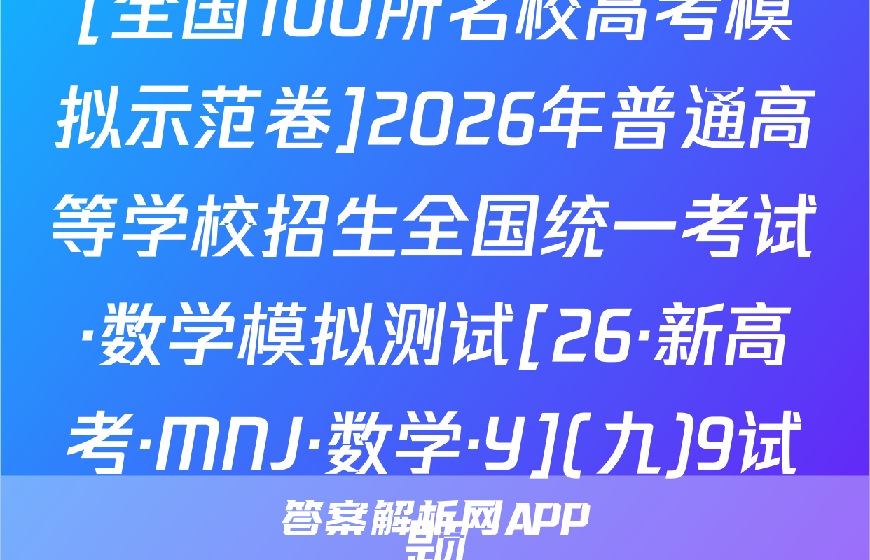 全国100所名校高考模拟示范卷按秘密级事项管理★启用前曲线A.32026年普通高等学校招生全国统一考试C.11数学模拟测试(九)发函数本试卷共150分考试时间120分钟.省个。y注意事项:1.答题前,考生务必将自己的姓名、准考证号填写在答题卡上,2.回答选择题时,选出每小题答案后,用铅笔把答题卡上对应题目的答案标号涂黑弥如需改动,用橡皮擦干净后,再选涂其他答案标号.回答非选择题时,将答案写在答题卡上.写在本试卷上无效.风若a3.考试结束后,将本试卷和答题卡一并交回,5元一、选择题:本题共8小题,每小题5分,共40分.在每小题给出的四个选项中,只有-A.项是符合题目要求的C.2πN,已知集合A=(xx0,B=义1,23,则A∩B=部B.{1,2,3}8.排序封A.{0,1,2,3}0直率避小基湖()D.{-2,-1,0}有AC.{-2,-1}函数f(x)一tan3x+)的最小正周期为tanae T:n,测某考0x1A.πB.c02b139好.0.6若a=403,b=log3,c=log.52,则线A.c-b>aB.a>c>bC.b>a>c年D.a>b>c4.如图,D为△ABC所在平面内的一点,若BC=4CD,AD=2AB乃:B+B0=B+@Bc+D+AC(a∈R),则发=二A.-5=AB时BDB.-4D叶C.-34B+Bc+CDD.-2B5⑦AB+BC+CB+BDAbt sD。时加落C4周)【26·新高考·MN·数学·Y】