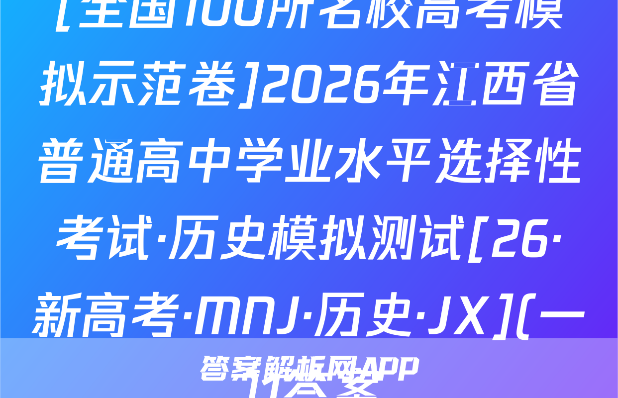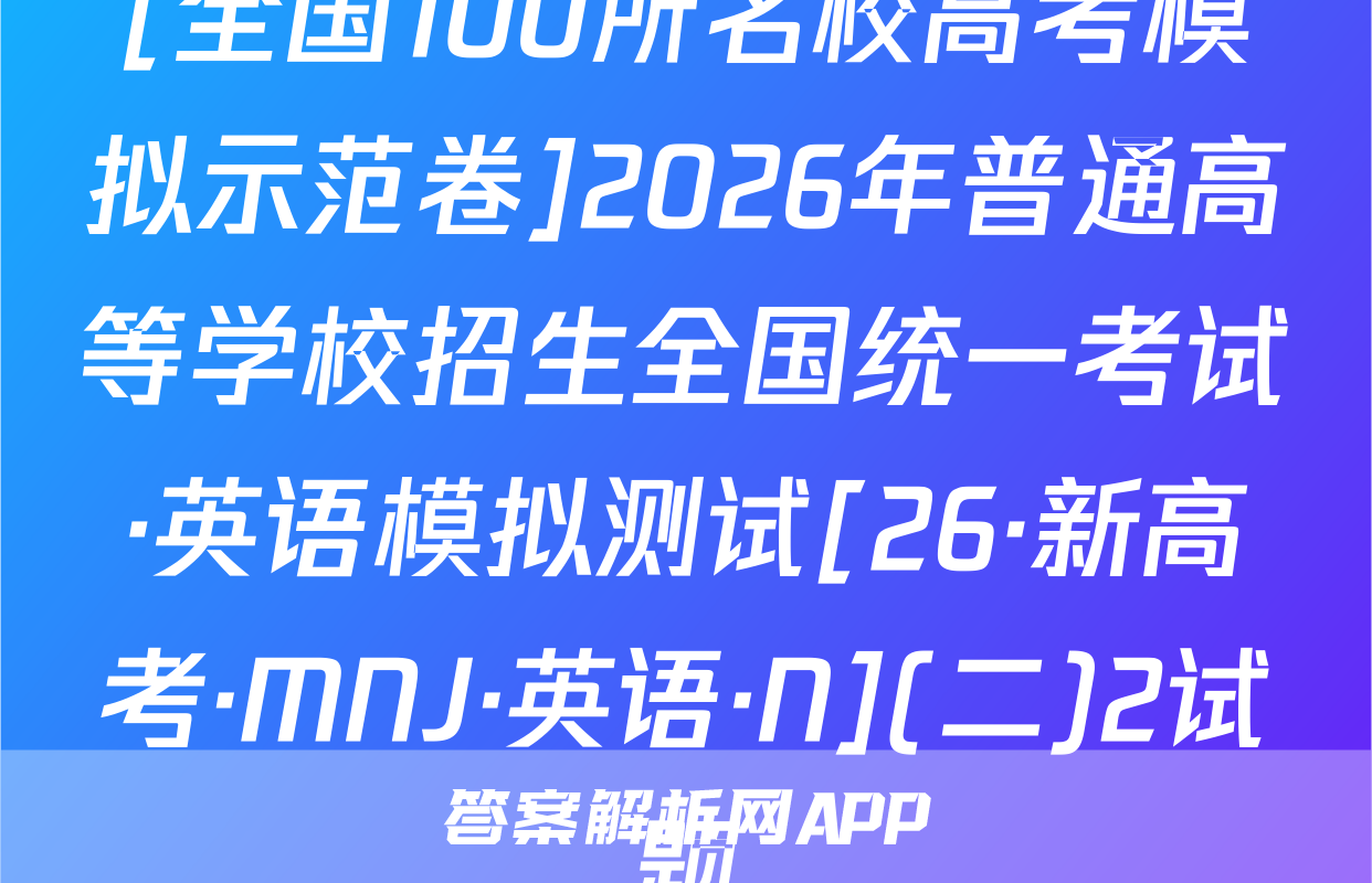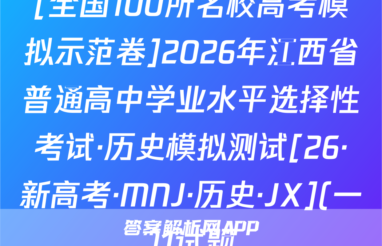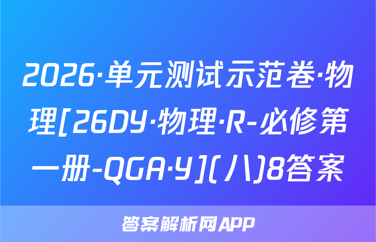 02s按秘密级事项管理★启用前全国100所名校高考模拟示范卷写出文字小是求日2026年普通高中学业水平选择性考试C.0.30s时,木棒的加速度为正向最大值全国100所名校高考模拟示范卷公集物理模拟测试(一)D.木棒在0,30s时与0.608时受到的合力相同心,6本试卷共100分考试时间75分钟3.2025年月。日在北京天安门大调天上我国展示了东风-5C液体际数路技导弹,如图所不若从地面上A点发对妆导,导弹沿ACDB精圆机范飞行·及注意事项:1.答题前,考生务必将自己的姓名、准考证号填写在答题卡上。终击中地面目标B。巴知CD段为导弹在大气发外关固发动机后直由飞行的一段2回答选择题时,选出每小题答案后,用铅笔把答题卡上对应题目的答案标号涂黑。轨选D点距地面的产停地球半色的。地球表面的玉力加注度为8:下列锁法正确的是如需改动,用橡皮擦干净后,再选涂其他答案标号。回答非选择题时,将答案写在答暖上。写在本试卷上无效。A.导弹沿CD段飞行时处于失重状态,不受地球引力作用B.导弹在C点的加速度大于其在D点的加速度大气3.考试结束后,将本试卷和答题卡一并交回。人C.导弹在A点的发射速度大于第二字寅速度地球-、单项选择题:本题共7小题,每小题4分,共28分。在每小题列出的四个选项中,D.导弹在D点的加速度大小为。只有一项符合题目要求。1.2025西安马拉松,10月19日在永宁门开赛。已知赛道全长42.195km。若在-段4.静电透镜被广泛应用于电子器件中,某阴极射线示波管的聚焦电场如图所示,其中平首路西上的过程中,某运动员在8内速度从6提升到2如,虚线为等差等势线,任意两条相邻等势线间的电势差相等,00为该电场的中心轴线。电场中,实线ae与O0'平行,且a,b,c、d、e为实线ae和虚线的五个交点,其中则下列说法正确的是a,bc三点的电势关系为p>p6>p。现一电子从a点以速度u,沿直线abc方向A该运动月跑完该次马拉松的位移大小为42.19饭km3米射人电场,电子仅受静电力的作用,则下列说法B研究该运动员在比赛中的跑步姿势时,可以起他看成质点州网8.3强正的是C这段时间内,该运动员的平均加速度大小约为0.06m/s2州Aa点处的电场方向沿实线ae由a指向D.跑步过程中,该运动员的重心始终在其灯何中心处NB.b点处的电场强度与e点处的电场强度相同2一根粗细均匀的木棒下端绕几圈铁丝,木棒就可以竖直浮在杯内水中,如图甲所示。现20C.电子可能沿直线在a、e间做往复运动线将木棒轻轻向下压一小段距离后由静止释放,此后木棒在竖直方向的运丸可视为简谐运D.电子在电场中做加速度变化的曲线运动动。从释放时开始计时,得到木棒的振动图像如图乙所示,则下列说法正磅的是5,为提高电动自行车的安全性能,最新的(电动自行车安全技术规范》规定,电动自行车最高设计车速不超过25km/h。假设某人驾驶如图所示的电动自行车由静止开始做匀加速直线运动,经过25s速度达到5m/s,电机恰好达到额定功0.300.450.600.75率。已知人(包括头盔)、车的总质量为100kg,行驶过程中一中米件尽A.木棒的振幅为8cm,周期为入6g0,0比限受到的阻力恒为人、车总重力的5,重力加速度g取10m/S测B在0~0,15s内,木棒的动能逐海变小A匀加速运动过程中,电动自行车的加速度大小为0.5m/s物理卷一人第1共8页伤·新海幸,N·物理58Q物理卷(一)第2页(共8(26·新高考,MNW·物理·SSQN)