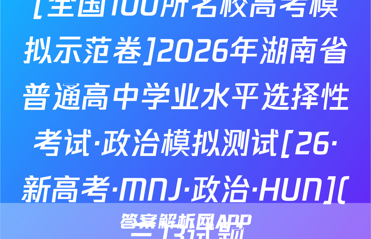 [全国100所名校高考模拟示范卷]2026年湖南省普通高中学业水平选择性考试·政治模拟测试[26·新高考·MNJ·政治·HUN](三)3试题