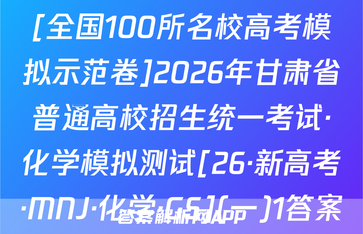 [全国100所名校高考模拟示范卷]2026年甘肃省普通高校招生统一考试·化学模拟测试[26·新高考·MNJ·化学·GS](一)1答案