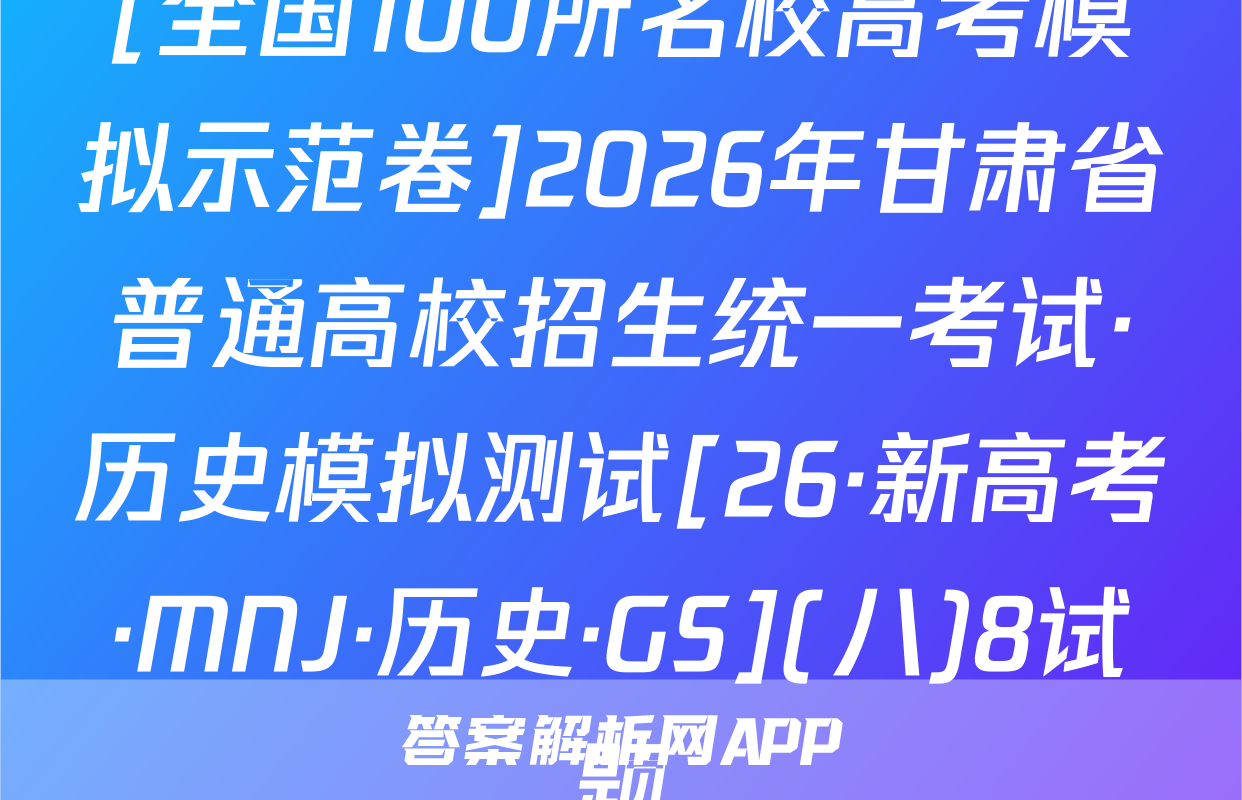 A.宗室势力掌控着中央决策权力全国100所名校高考模拟以示范卷B.朝廷注重制衡宗室与异姓势力C.官僚体系呈现出胡汉分治特点D.政权中异姓官员均已位高权重4.唐代之前寿州窑多采用明火叠烧的方法烧制瓷器,这使得瓷器釉面存在烟熏渍、落砂粒等问题。唐代窑工改进烧制技术,使用匣钵(见右图)烧制,将瓷器坯体重叠置于匣钵内,匣钵之间用耐火泥弥合后形成匣钵组合,再将匣钵重叠装入窑室。这一变化反映了A.制瓷工艺革新优化产品质量B.唐朝手工业管理的规范化C.唐代制瓷业的生产颇具规模少官营手工业垄断制瓷工艺5.周敦颐的早期著作《太极图说》依据阴阳哲学的原理,立足儒家的价值理想,提出了一个与佛学相抗衡的定宙构成论,并完整地论述了德性的完善过程。据此可知,周敦颐的学说/A使儒、佛、道思想醱为体B.创建了宋明理学的基本架构C.本质是对儒学患想的重构D.适应了君主专制统治的需要6.下表所示是明朝时传教士利玛窦与康熙年间广州诗人屈大均对广州贸易的记载。这些记载可以用来说明明清时期记载人物官员特许葡萄牙人湖河面上至广东省壮丽的省会进行两天的旅行,但他们夜间必须待在船上,白天可在城内的街道上进行贸易。这种利玛窦公开市场的时间般规定为两个月洋船争出是官商,十字门开向二洋,五丝八丝广缎好,银钱堆满十三行屈大均B.政府严格管控对外贸易A.民间海外贸易日益兴盛D.官方贸易占据主导地位7,张之洞曾说:“学政一官,不仅在衡校一日之短长,而在蜡养平且之根抵。不仅以提倡文学为事)而当以砥砺名节为先。”地还言明:“期与此邦人士研究实学,共相藤切,C.中西经贸往来渐趋频繁务得通经学古之士,经世致用之才。”张之洞的言论B.意在变革传统的选官制度A摒弃了传统伦理道德教育D.秉持中体西用的办学理念(26·新高考·MN·历史·GS契合了近代中国转型趋势C.始2页(共8页