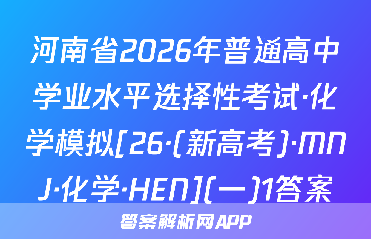 河南省2026年普通高中学业水平选择性考试·化学模拟[26·(新高考)·MNJ·化学·HEN](一)1答案
