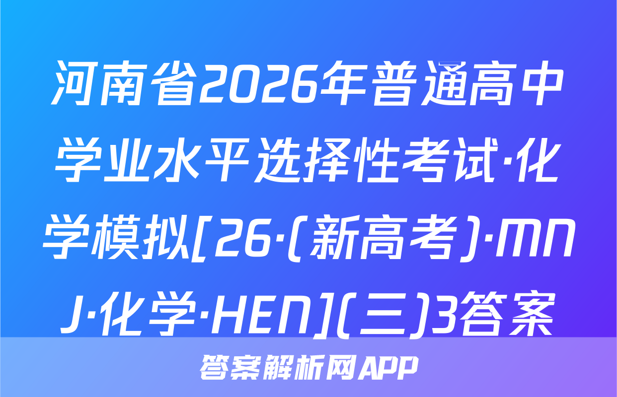 河南省2026年普通高中学业水平选择性考试·化学模拟[26·(新高考)·MNJ·化学·HEN](三)3答案
