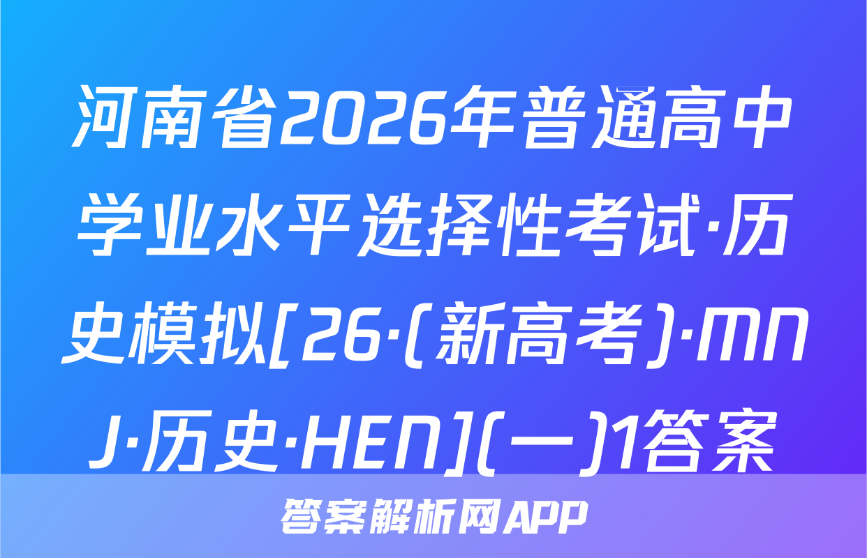 河南省2026年普通高中学业水平选择性考试·历史模拟[26·(新高考)·MNJ·历史·HEN](一)1答案