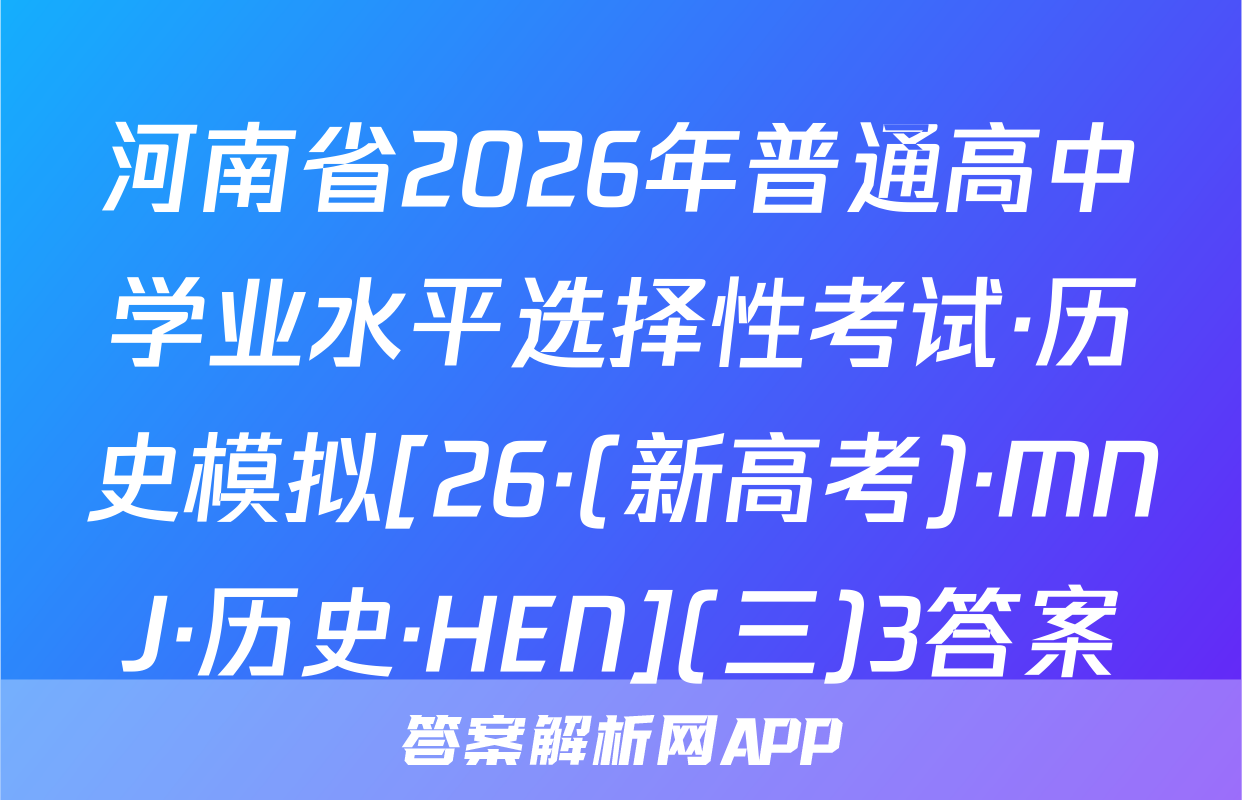 河南省2026年普通高中学业水平选择性考试·历史模拟[26·(新高考)·MNJ·历史·HEN](三)3答案