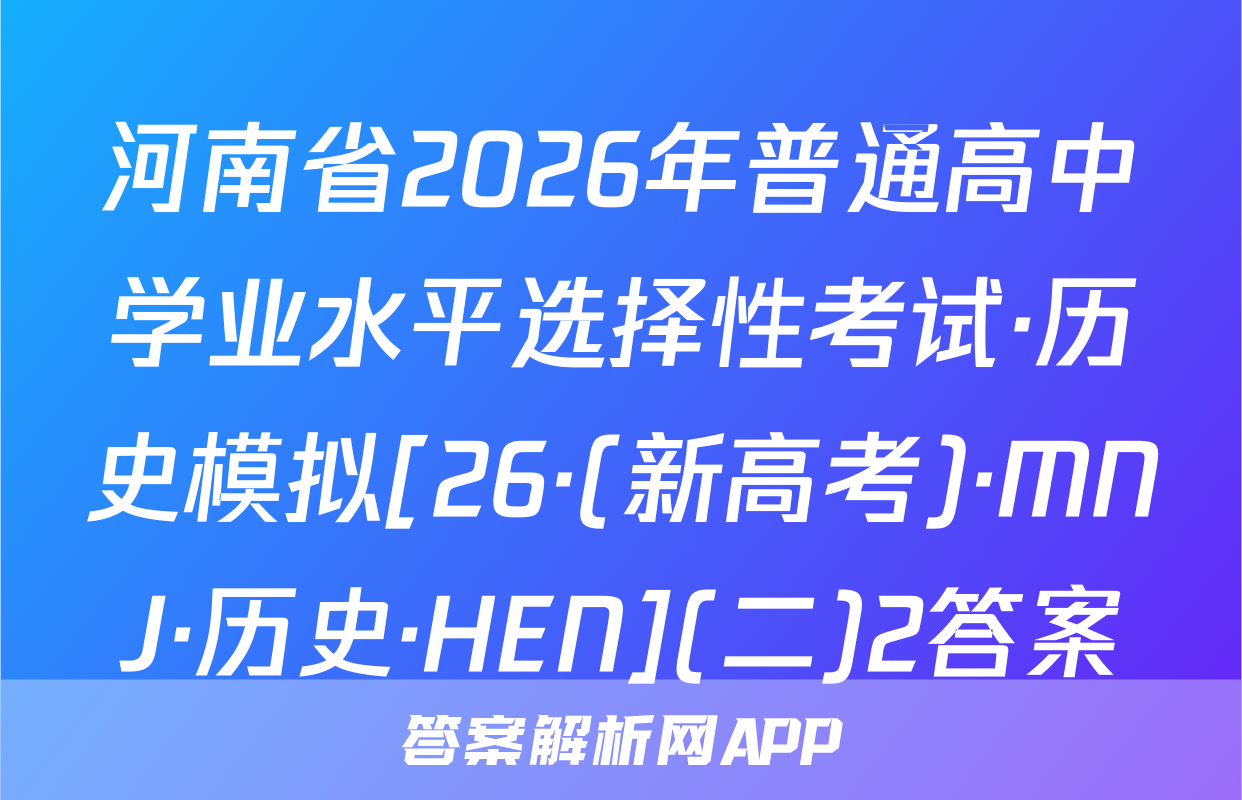 河南省2026年普通高中学业水平选择性考试·历史模拟[26·(新高考)·MNJ·历史·HEN](二)2答案