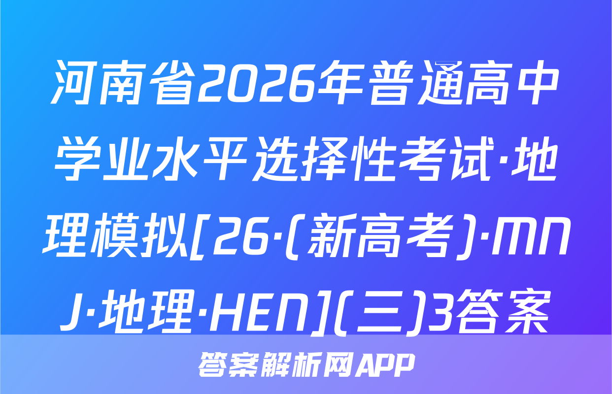 河南省2026年普通高中学业水平选择性考试·地理模拟[26·(新高考)·MNJ·地理·HEN](三)3答案