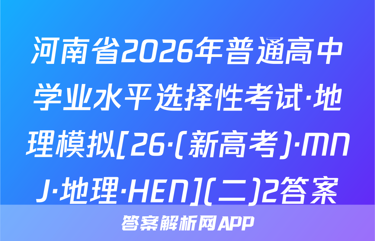 河南省2026年普通高中学业水平选择性考试·地理模拟[26·(新高考)·MNJ·地理·HEN](二)2答案