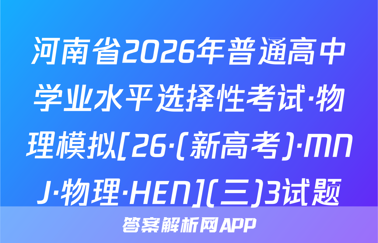 河南省2026年普通高中学业水平选择性考试·物理模拟[26·(新高考)·MNJ·物理·HEN](三)3答案