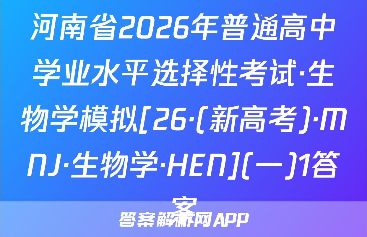 河南省2026年普通高中学业水平选择性考试·生物学模拟[26·(新高考)·MNJ·生物学·HEN](一)1答案