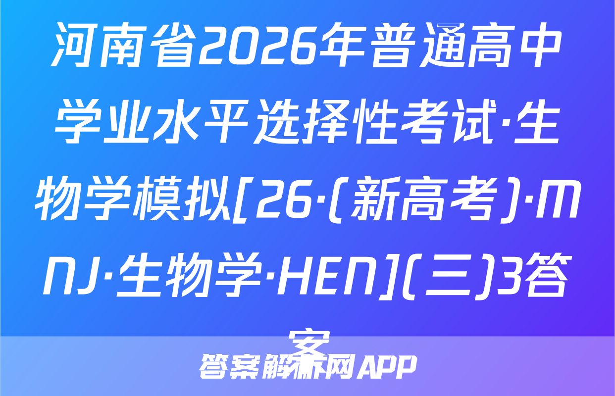 河南省2026年普通高中学业水平选择性考试·生物学模拟[26·(新高考)·MNJ·生物学·HEN](三)3答案